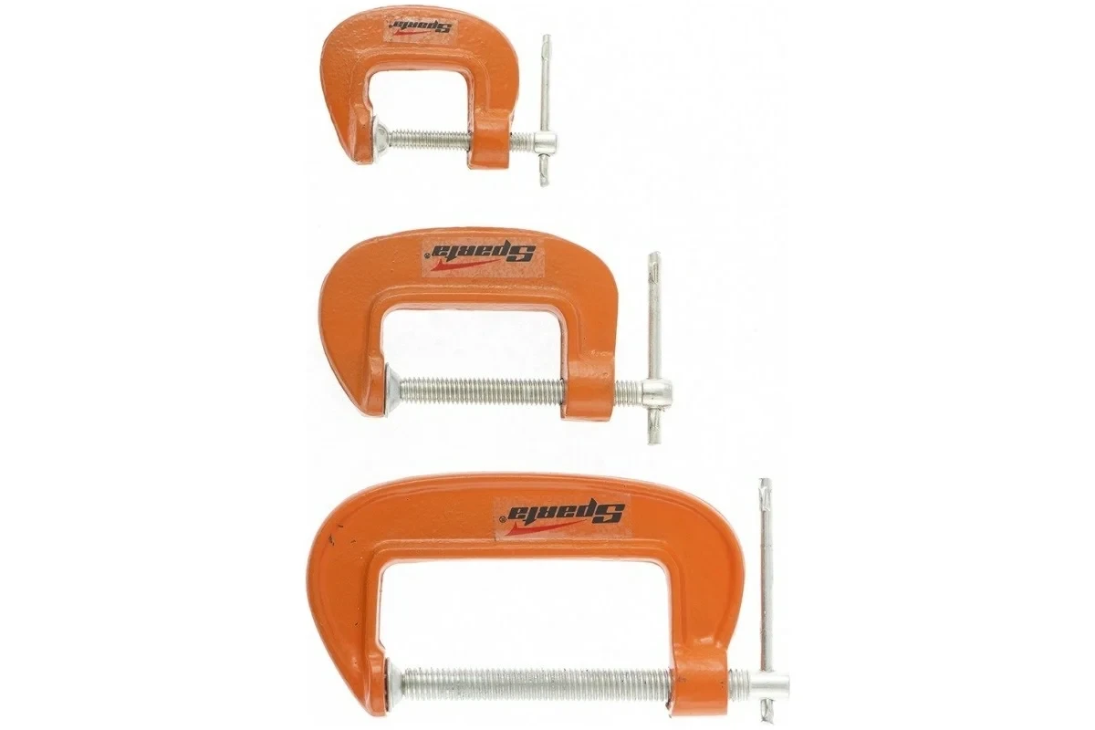 Набор G-образных струбцин 3 шт, 25-50-75 мм SPARTA 206755 включает в себя очень прочные и надежные инструменты. Специальные зажимы позволяют более уверенно фиксировать необходимые детали. Струбцины имеют повышенный рабочий ресурс за счет высокого качества материалов, используемых при их изготовлении.