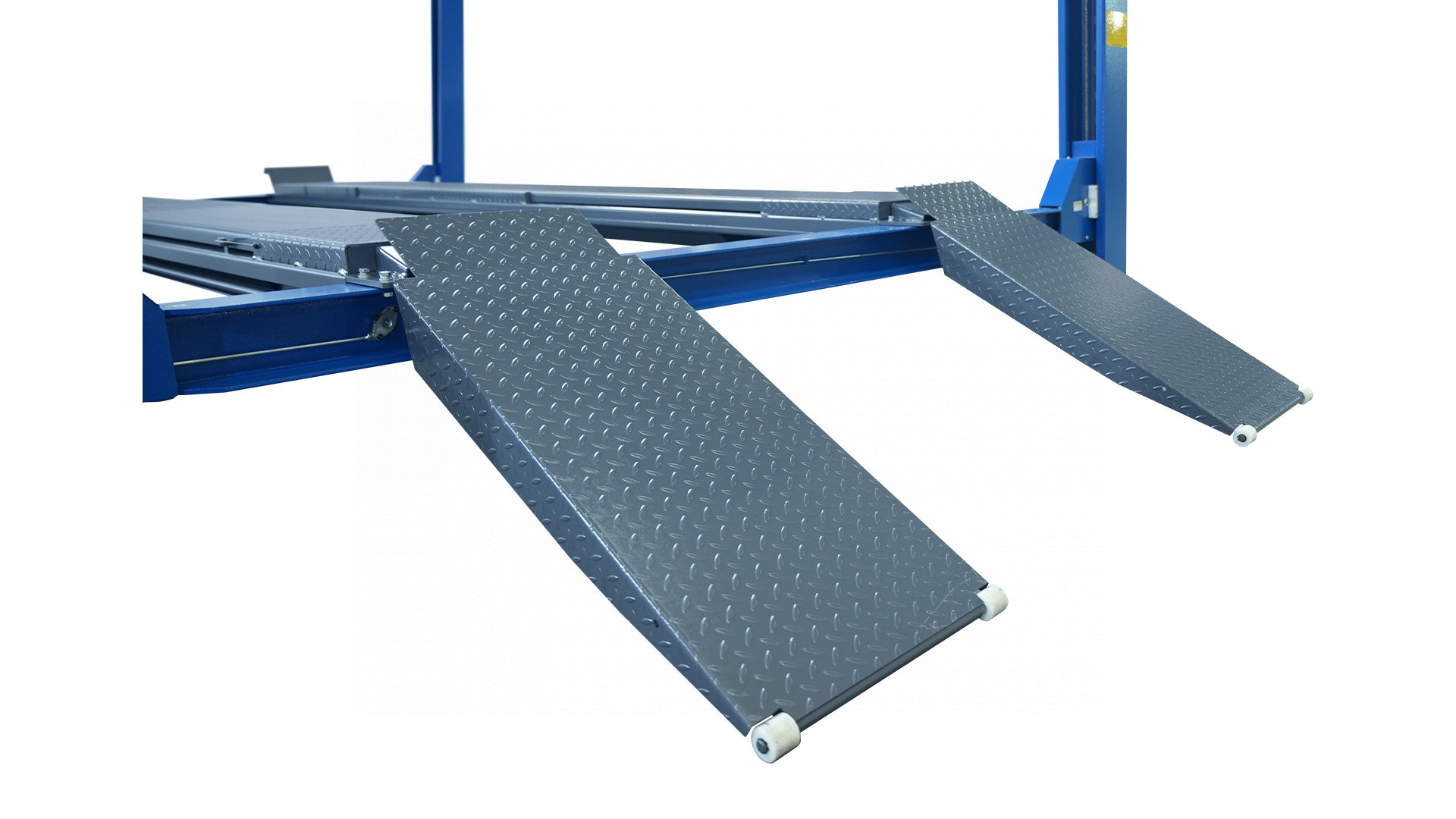 - Противоскользящее покрытие трапов и платформ — улучшенное сцепление колёс при заезде авто на подъемник;