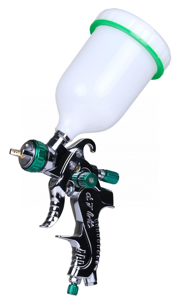 Краскопульты серии HVLP (High Volume Low Pressure) используют технологию высокого расхода воздуха при низком давлении. Эта технология позволяет снизить количество аэрозольного тумана (за счет низкого давления в распыляющей головке, около 0,7 Бар) и соответственно увеличить коэффициент переноса материала по сравнению с обычными краскопультами до 65-70%.