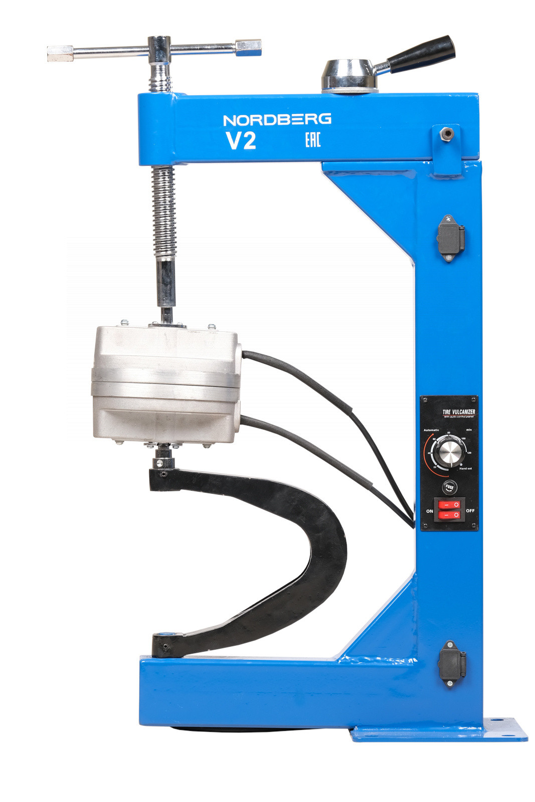 NORDBERG V2 — профессиональный настольный вулканизатор с двумя нагревательными элементами. Используется на СТО, в шиномонтажных мастерских и автопредприятиях.ФУНКЦИОНАЛ