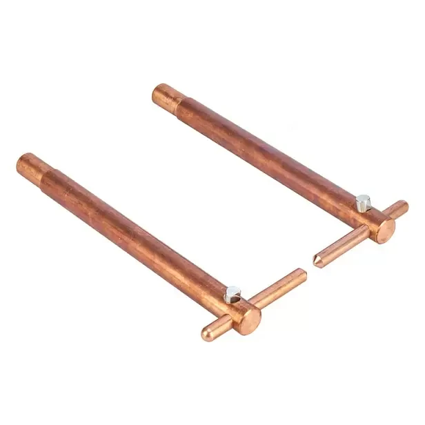 Плечи комплекта изготовлены из высококачественного медного сплава с добавлением хрома, что обеспечивает отличную электропроводность и повышенную теплостойкость. Такой состав гарантирует эффективную передачу тока и оптимальное распределение тепла в зоне сварки, что критически важно для получения прочных и качественных сварных соединений. Длина плеч в 125 мм обеспечивает удобный доступ к различным участкам свариваемых деталей, позволяя выполнять сварку в труднодоступных местах и на сложных геометрических формах.