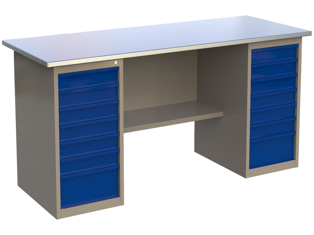 Стандартный цвет: корпус - серый глянец RAL 7030, ящики и двери тумб - синий RAL 5017.