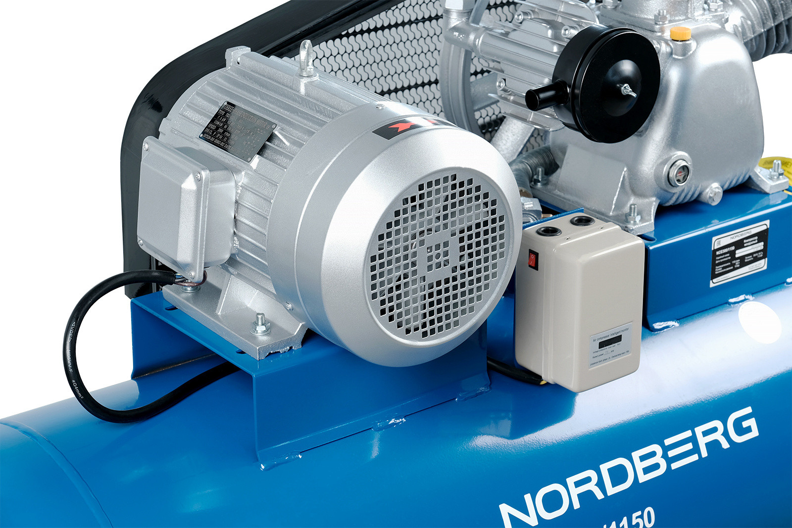 Поршневой компрессор с ременным приводом NORDBERG NCE300/1150 – промышленное оборудование для применения с пневмоинструментами в автосервисных мастерских и для использования в бытовых целях.