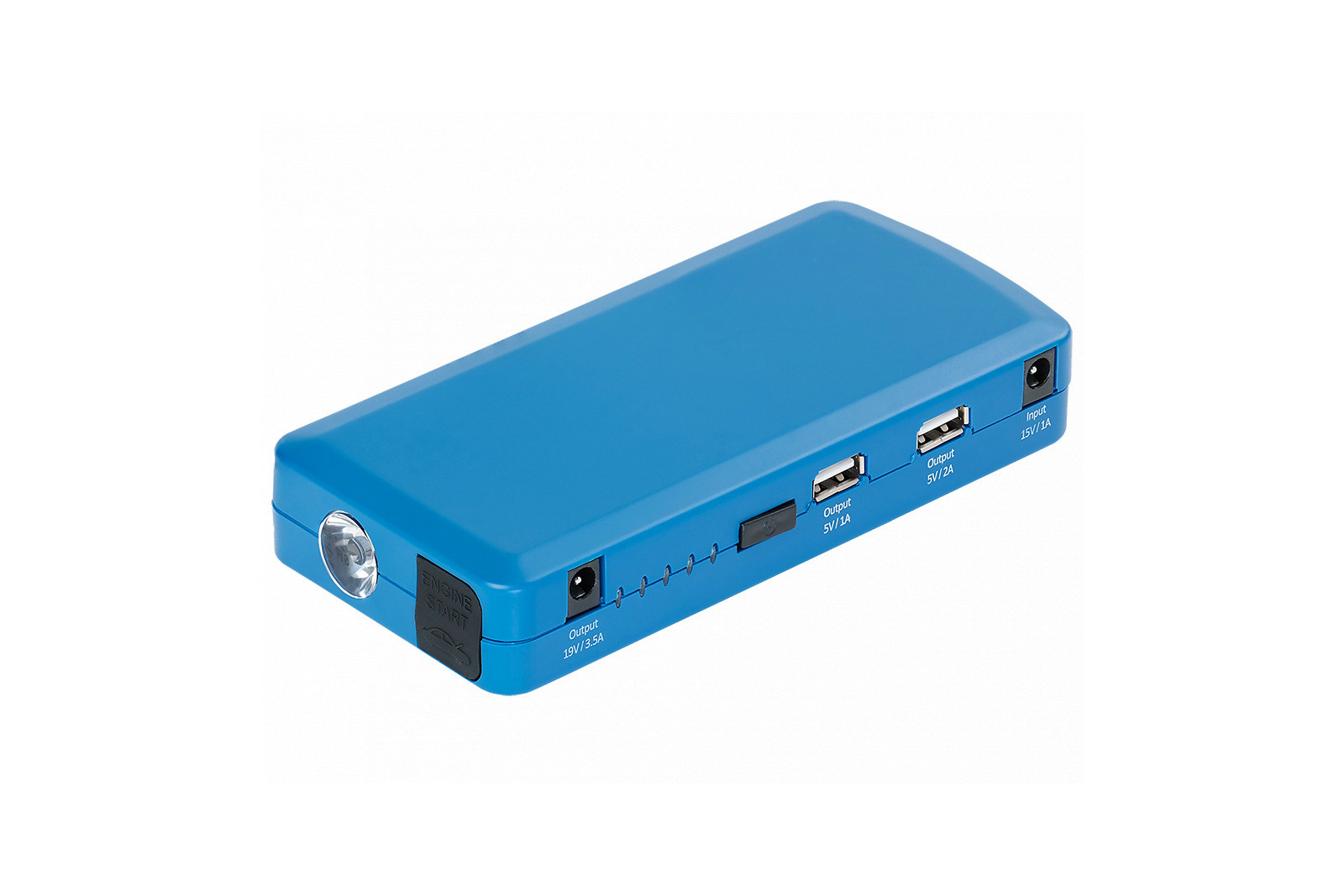 - Может использоваться в качестве внешнего источника питания для зарядки смартфонов и планшетов через разъемы USB A c напряжением 5В, с силой тока 1А или 2А, ноутбуков с напряжением питания 19,5В/ 3,5А, а также других потребителей, с питанием 12В/2А, например переносных автомобильных холодильников и т. д.