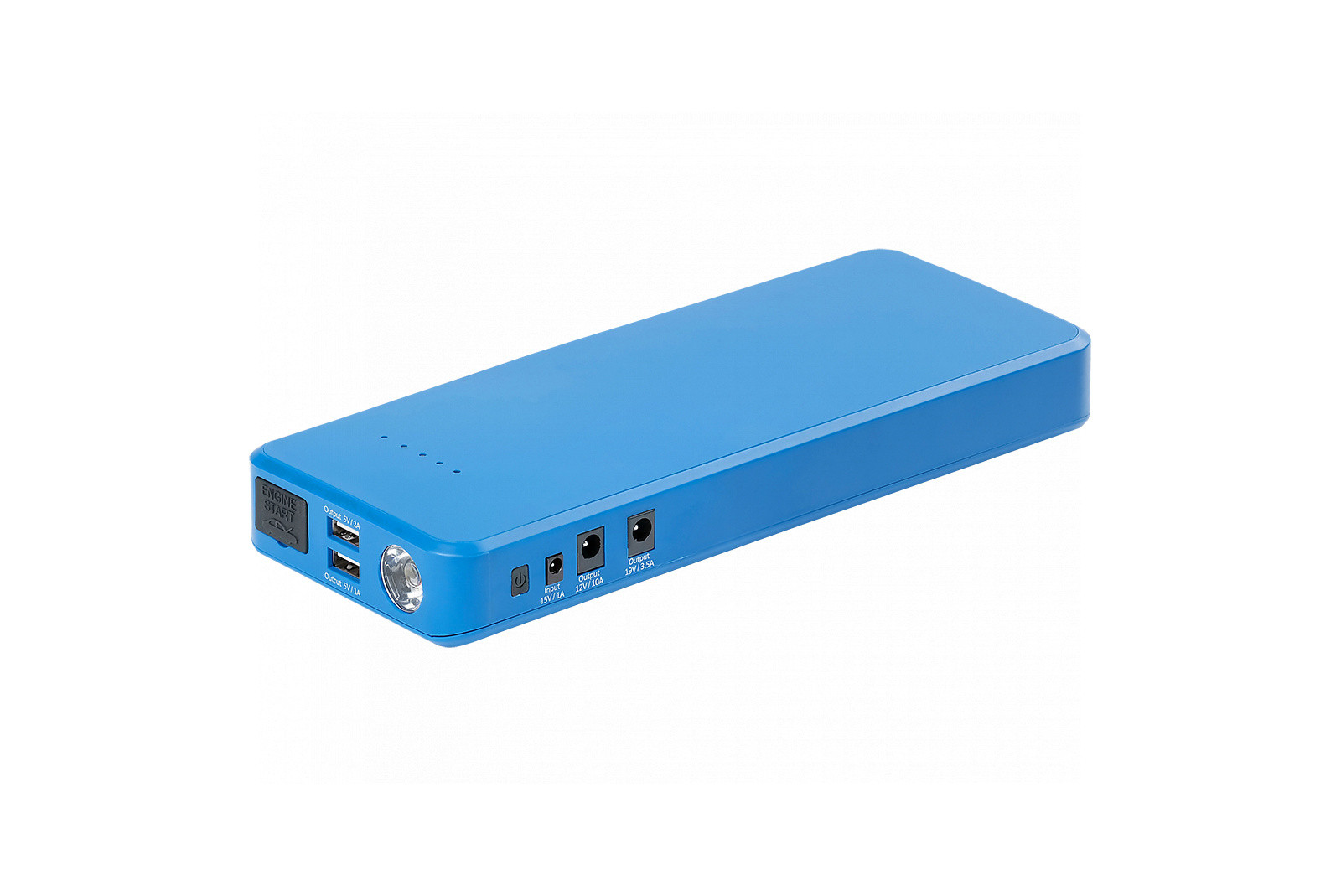 - Может использоваться в качестве внешнего источника питания для зарядки смартфонов и планшетов через разъемы USB A c напряжением 5В, с силой тока 1А или 2А, ноутбуков с напряжением питания 19,5В/ 3,5А, а так же других потребителей, с питанием 12В/2А, например переносных автомобильных холодильников и т.д.