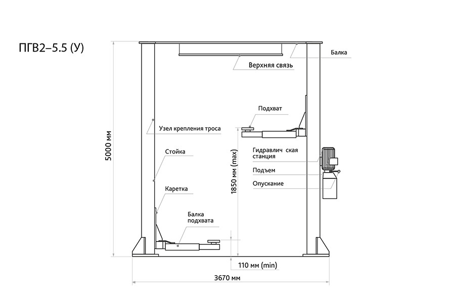 Высота колонн 5 метров, что позволяет поднимать высокие автомобили.