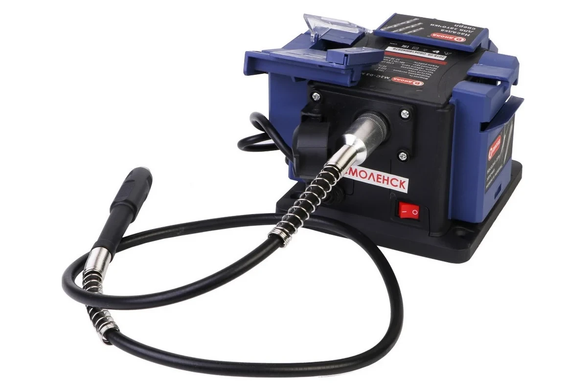 При установке на машину гибкого вала гравера (входящего в комплект поставки) функциональные возможности МЗС-03 М еще более расширяются. Машину можно использовать для сверления, заточки, полировки, шлифовки, отрезания, фрезерования и гравировки различных материалов при использовании соответствующего рабочего инструмента для перечисленных видов работ (в комплект поставки не входит).