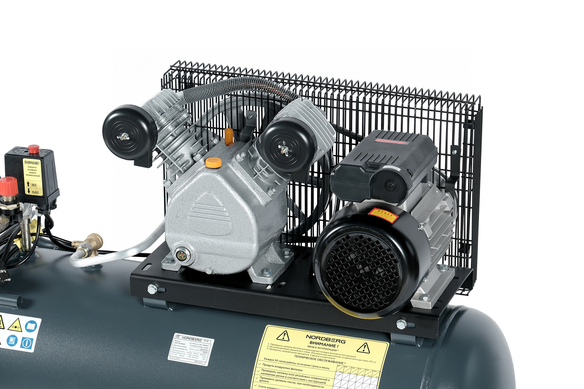 Поршневой компрессор с ременным приводом NORDBERG NCP100/360A – промышленное оборудование для применения с пневмоинструментами в автосервисных мастерских и для использования в бытовых целях.