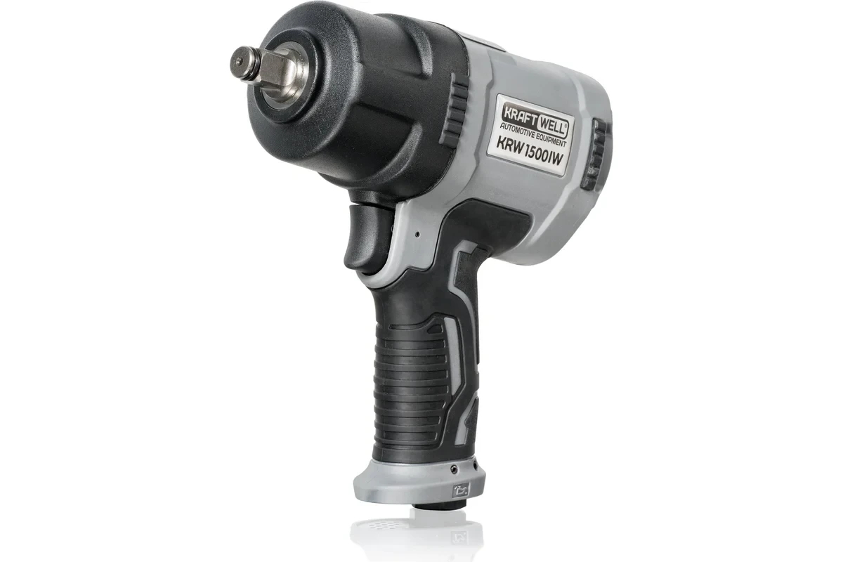 П8000невматический гайковерт KRAFTWELL, модель KRW1500IW с ударным механизмом “TWIN HAMMER” и системой смазки под давлением развивает крутящий момент 1500 Нм. Размер посадочного квадрата составляет 1/2”, что позволяет работать с ударными головками от 10 до 27 мм. Воздушный мотор оснащен качественными подшипниками, торцевыми пластинами из кованной стали и тщательно обработанными компонентами для обеспечения плавной работы и максимальной мощности. Корпус гайковерта выполнен из высококачественной прочной стали и рассчитан на длительный период эксплуатации. Рукоятка имеет прорезиненное покрытие, позволяющее оператору надежно удерживать гайковерт.