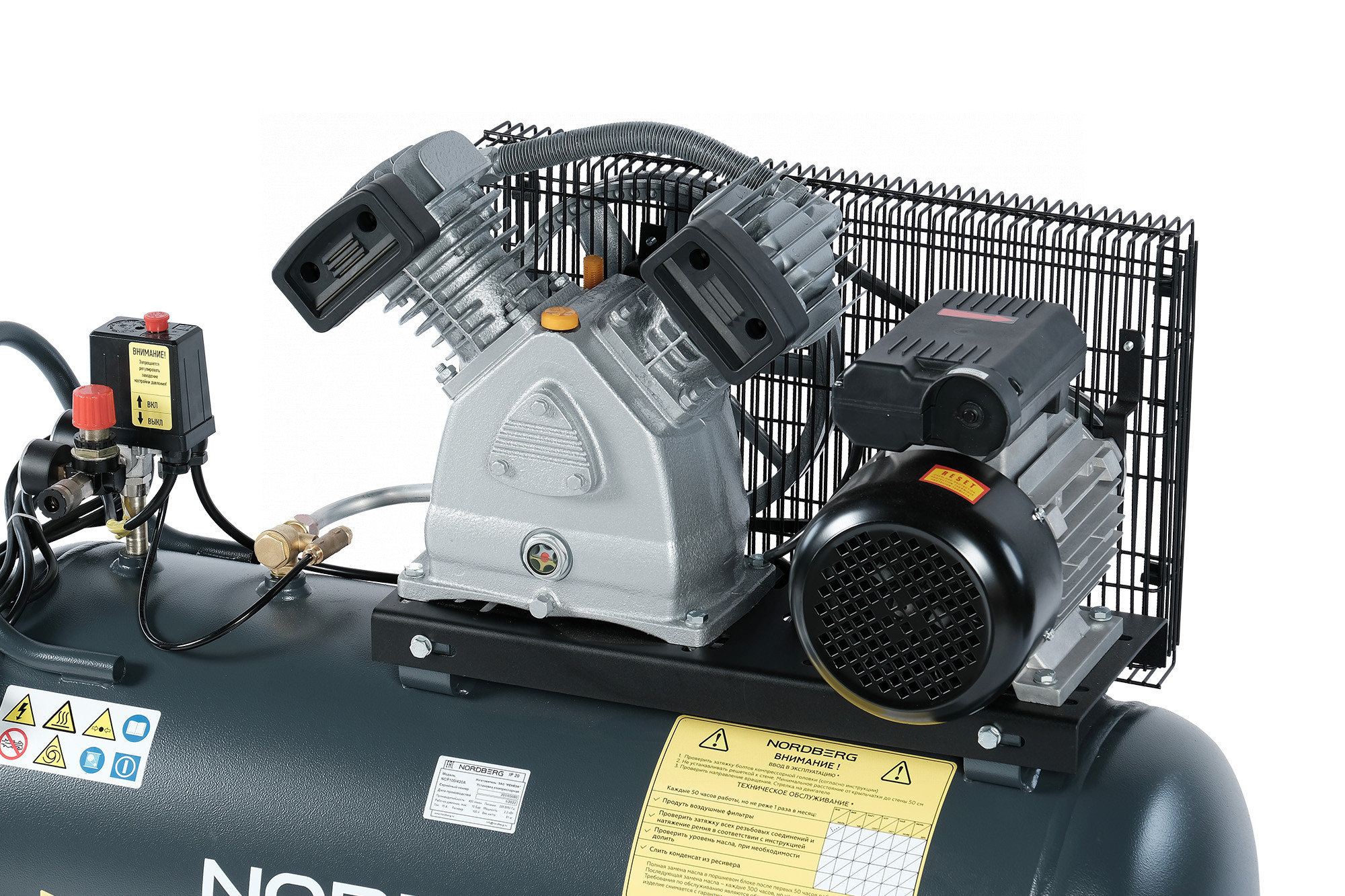 Поршневой компрессор с ременным приводом NORDBERG NCP100/420A – промышленное оборудование для применения с пневмоинструментами в автосервисных мастерских и для использования в бытовых целях.