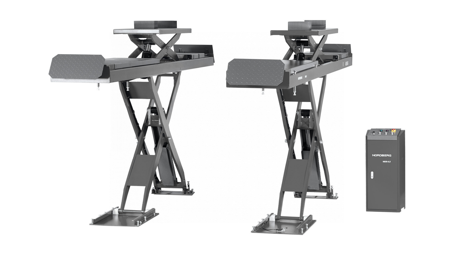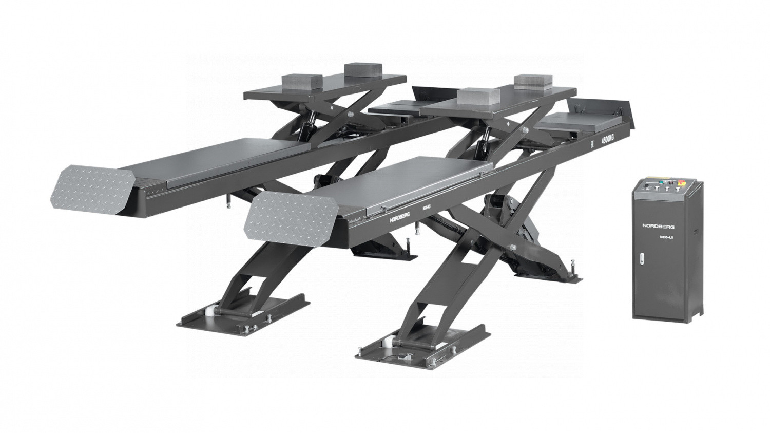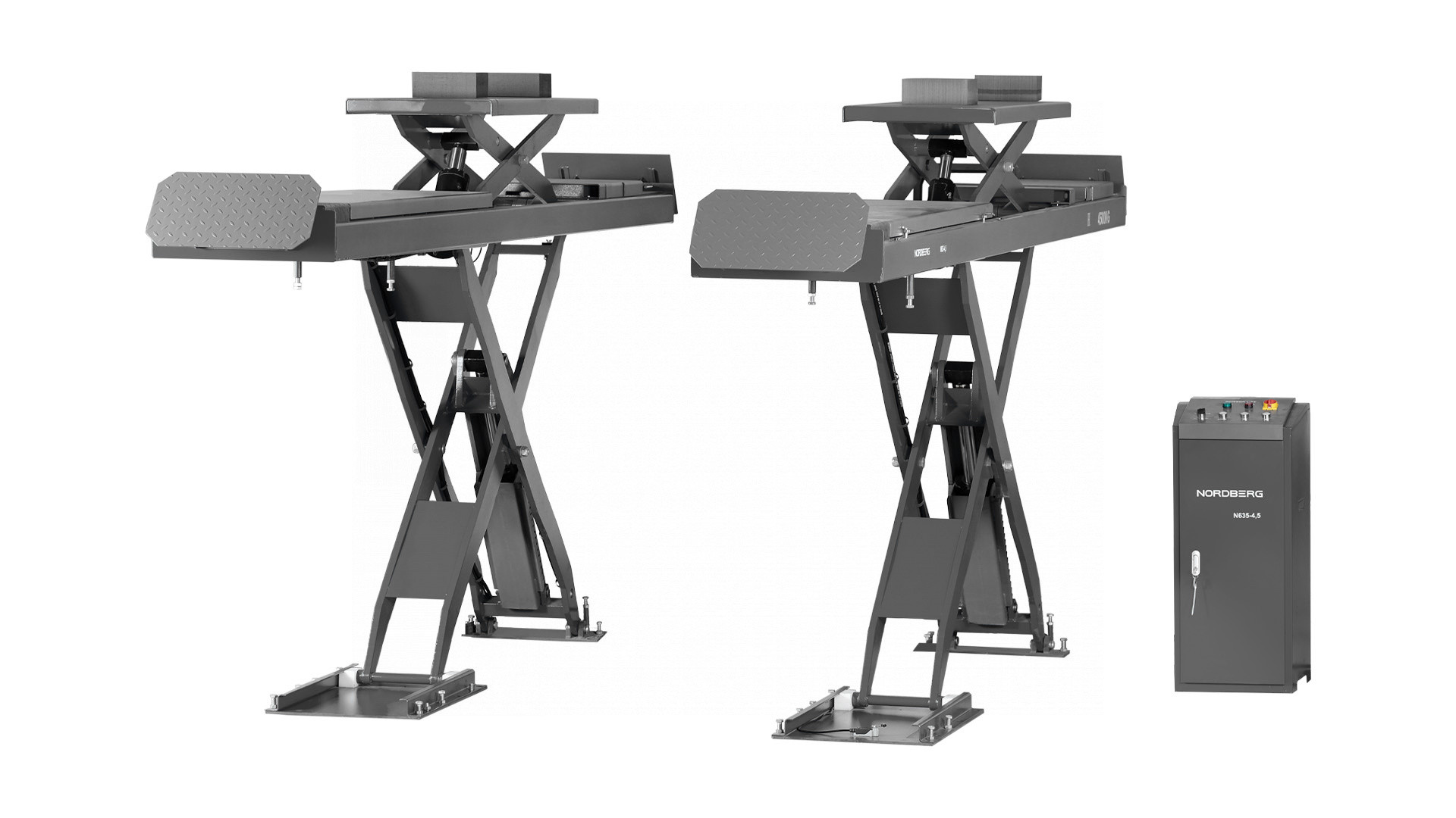 Подъемник ножничный для сход-развала NORDBERG N635-4,5 – профессиональное оборудование для обслуживания легкового и грузового транспорта в автосервисных мастерских и СТО.
