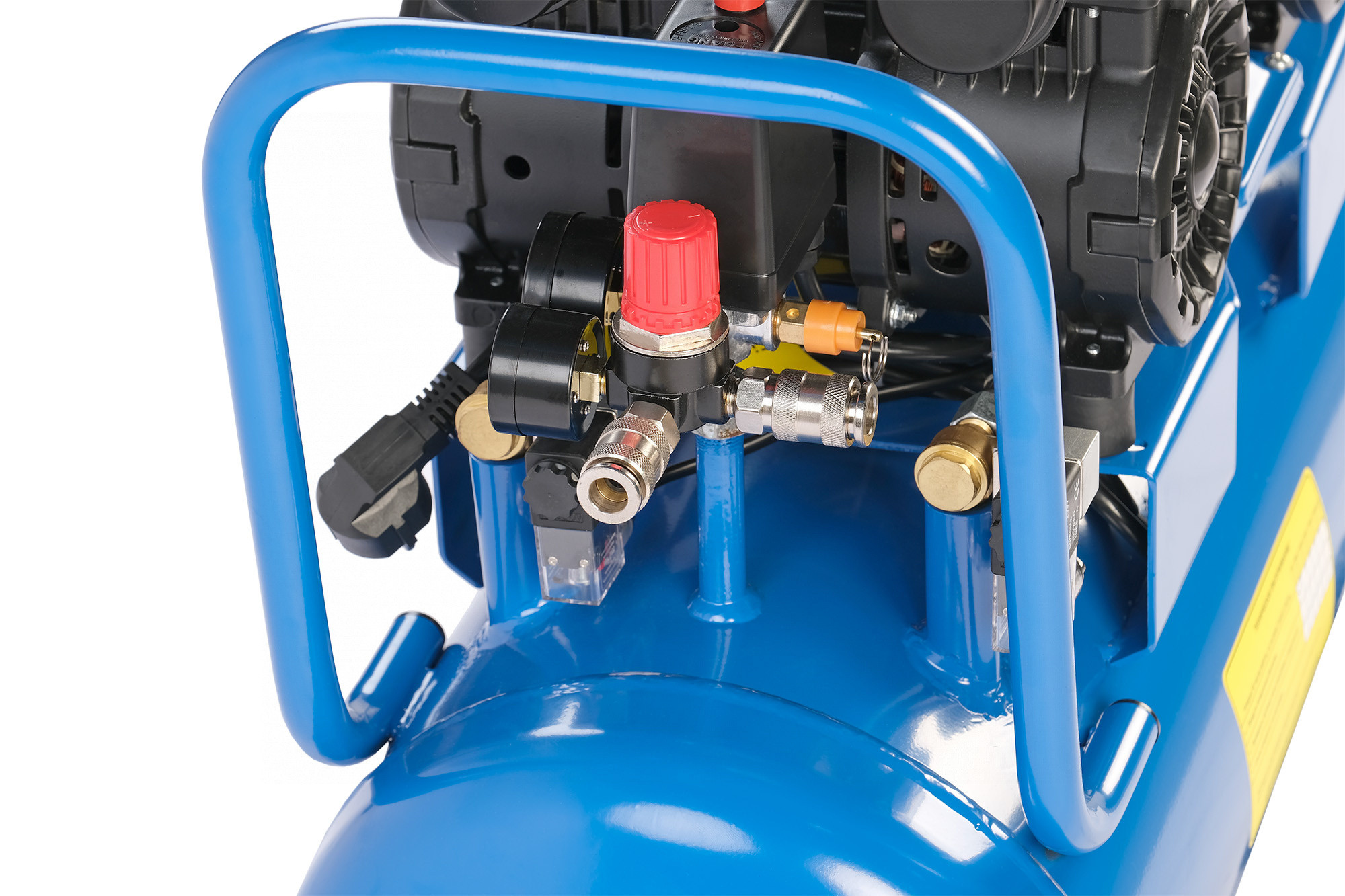 - 2 манометра для указания общего давления в ресивере и давление, на выходе которое можно регулировать с помощью установленного на нем редуктора