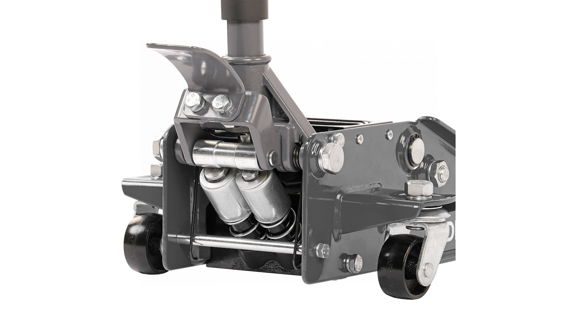 Благодаря конструкции с маневренными колесами домкрат удобно перемещать по площадке и подкатывать под автомобиль