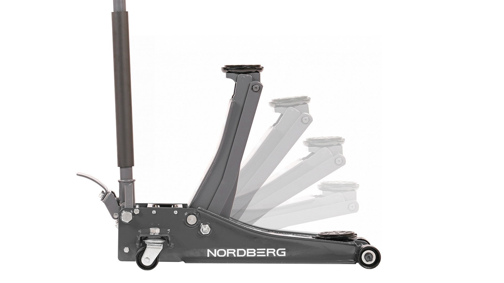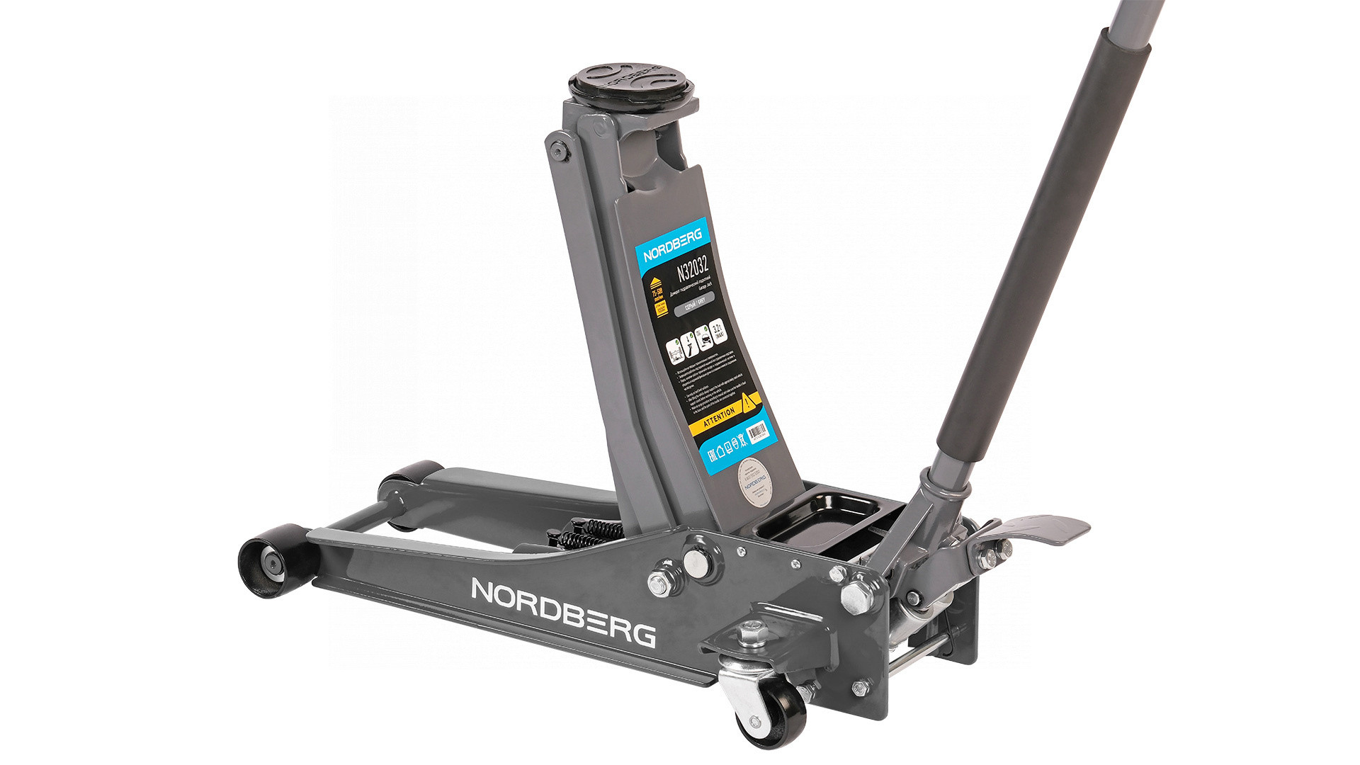 Домкрат подкатной NORDBERG N32032G с педалью для быстрого подъема значительно упростит процесс ремонта и обслуживания автомобиля.