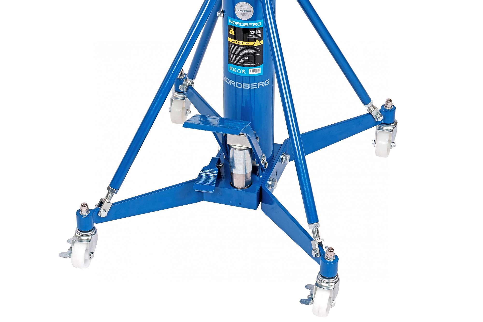 Трансмиссионная гидравлическая стойка NORDBERG N3410N предназначается для подъема и перемещения автотранспорта массой до 1000 кг. Установка используется при ремонте узлов и других элементов автомобилей. Стойка имеет хромированный шток, что значительно продлевает срок службы. Конструкция предусматривает колеса для легкой и удобной транспортировки по рабочей площадке.