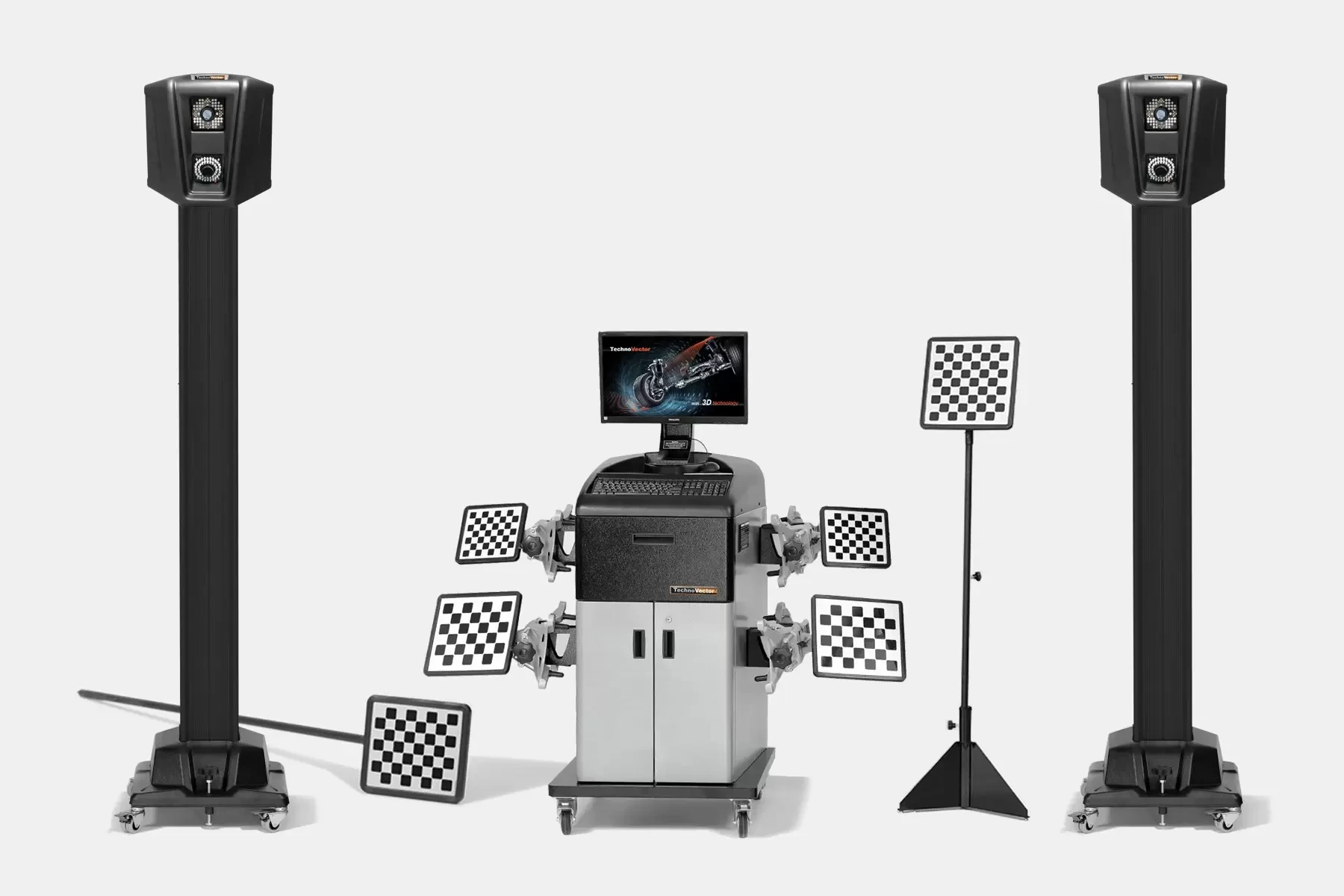 Стенды ТехноВектор 7 с технологией 3D для грузовых автомобилей предназначены для измерения и регулировки углов установки колес грузовых автомобилей в условиях автотранспортных предприятий, станций технического обслуживания, автомобильных заводов и диагностических центров.