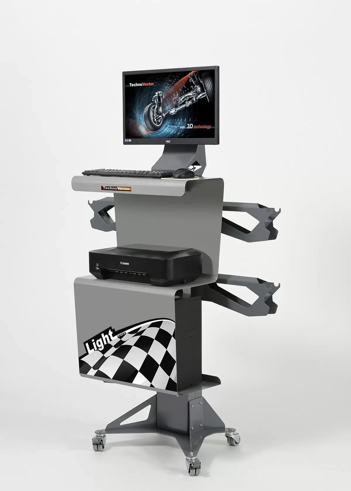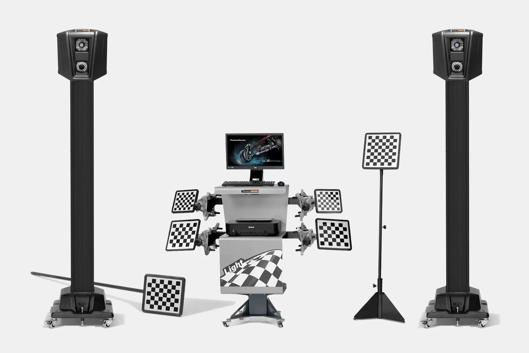 Функционирование приборов основано на измерении угловых параметров, определяющих положение осей и колес автомобиля с помощью видеокамер и плоских мишеней с градиентным рисунком.