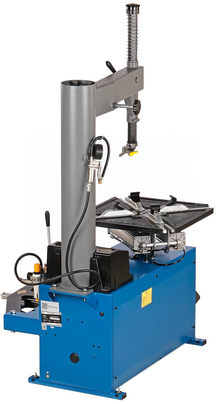 Предназначен для монтажа и демонтажа стандартных, низкопрофильных, камерных и безкамерных шин легковых автомобилей и легких грузовиков. Работает с дисками различных сплавов. Для более эффективной работы применен четырех кулачковый самоцентрирующийся механизм поворотного стола, работающий от пневмопривода. Простая и надежная конструкция позволяет обеспечить длительный цикл данных станков при средней интенсивности эксплуатации.