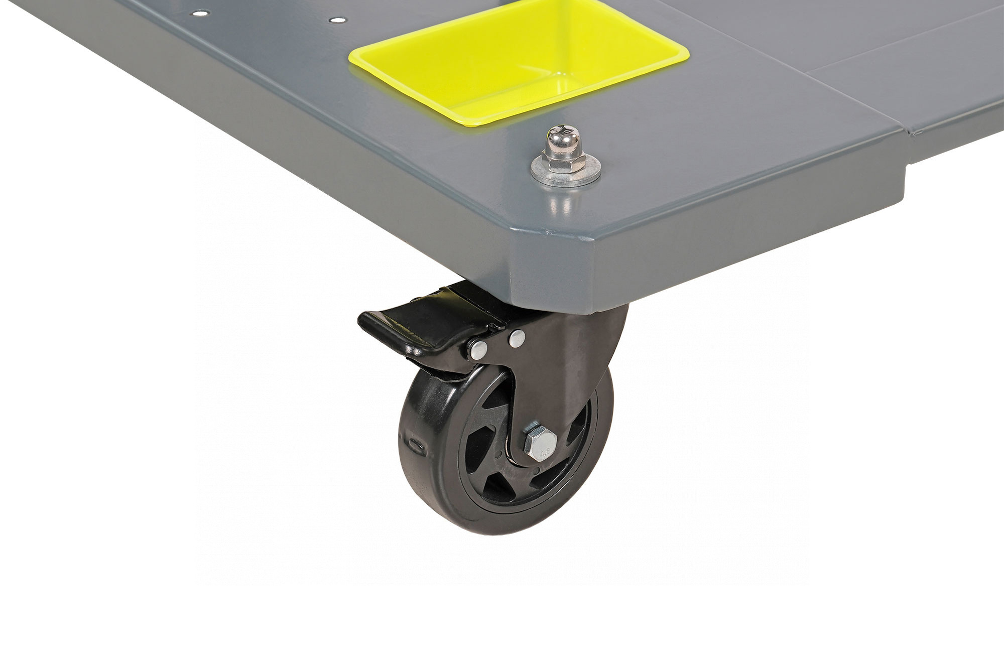 Эргономичная ручка и 4 колеса (2 поворотные) позволяют с легкостью перемещать тележку с бочкой