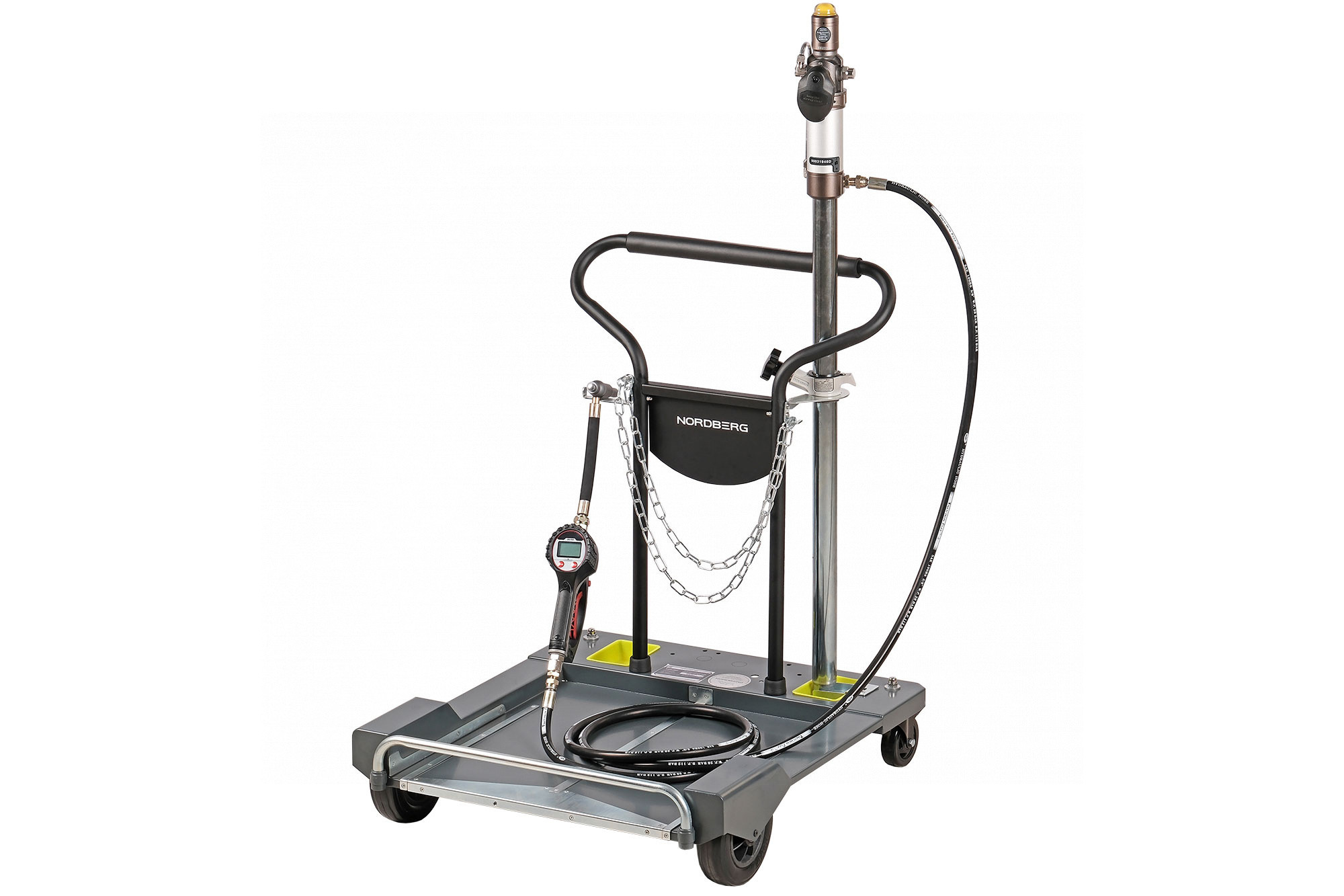 Установка с тележкой для раздачи масла из бочек NORDBERG NO40180T – специализированное оборудование для использования в автосервисах, СТО, ремонтных базах.