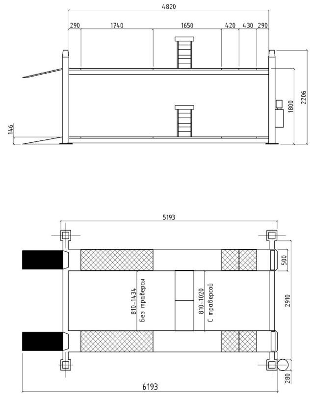 Четырехстоечный подъёмник. Конструктивные особенности: