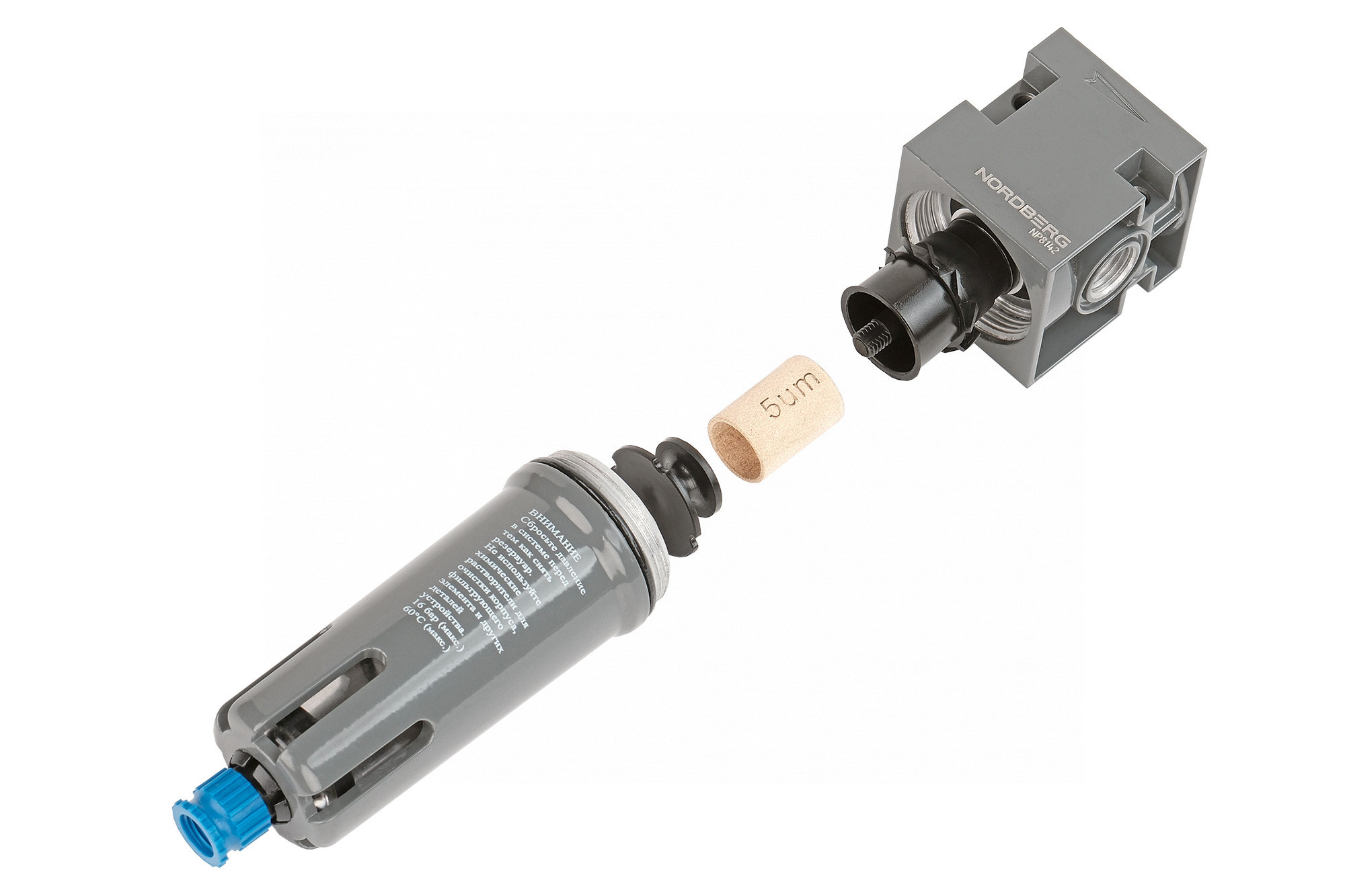 Фильтр удаляет из сжатого воздуха частицы пыли более 5 мкм и собирает конденсат, образующийся в результате перепадов давления и температуры.