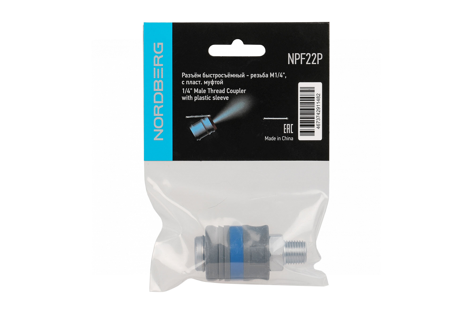Разъем "мама" быстросъемный с пластиковой муфтой NORDBERG NPF22P с присоединительным размером наружной резьбы 1/4".