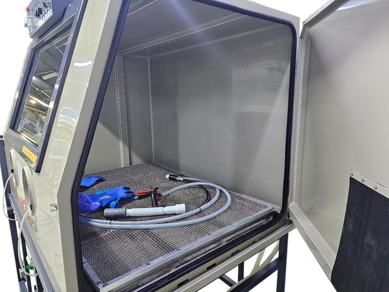 Работает с четырьмя видами абразива: стеклошарик, кварцевый песок, электрокорунд, дробь из нержавеющей стали.