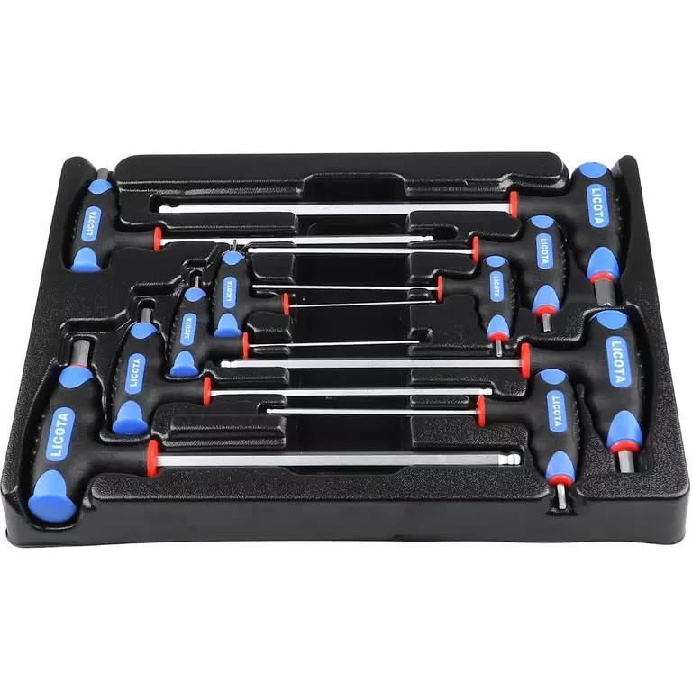 Набор ключей Т-образных шестигранных Licota ACK-382002. Комплект из 10 ключей, оснащенных двумя стержнями с профилем HEX (шестигранник) для монтажа/демонтажа резьбовых соединений с внутренним шестигранным профилем.
