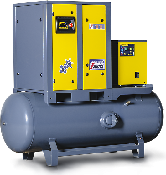 Профессиональный контроллер t-Log управляет работой компрессора полностью в автоматическом режиме, а также даёт пользователю необходимую информацию о рабочем давлении, температуре воздушно-масляной смеси, времени работы компрессора, необходимости сервисного обслуживания и.т.д. Контроллер t-Log позволяет управлять в групповом режиме несколькими компрессорами, а также подключиться к мастер-контроллеру более высокого уровня или диспетчерской через MODBUS.