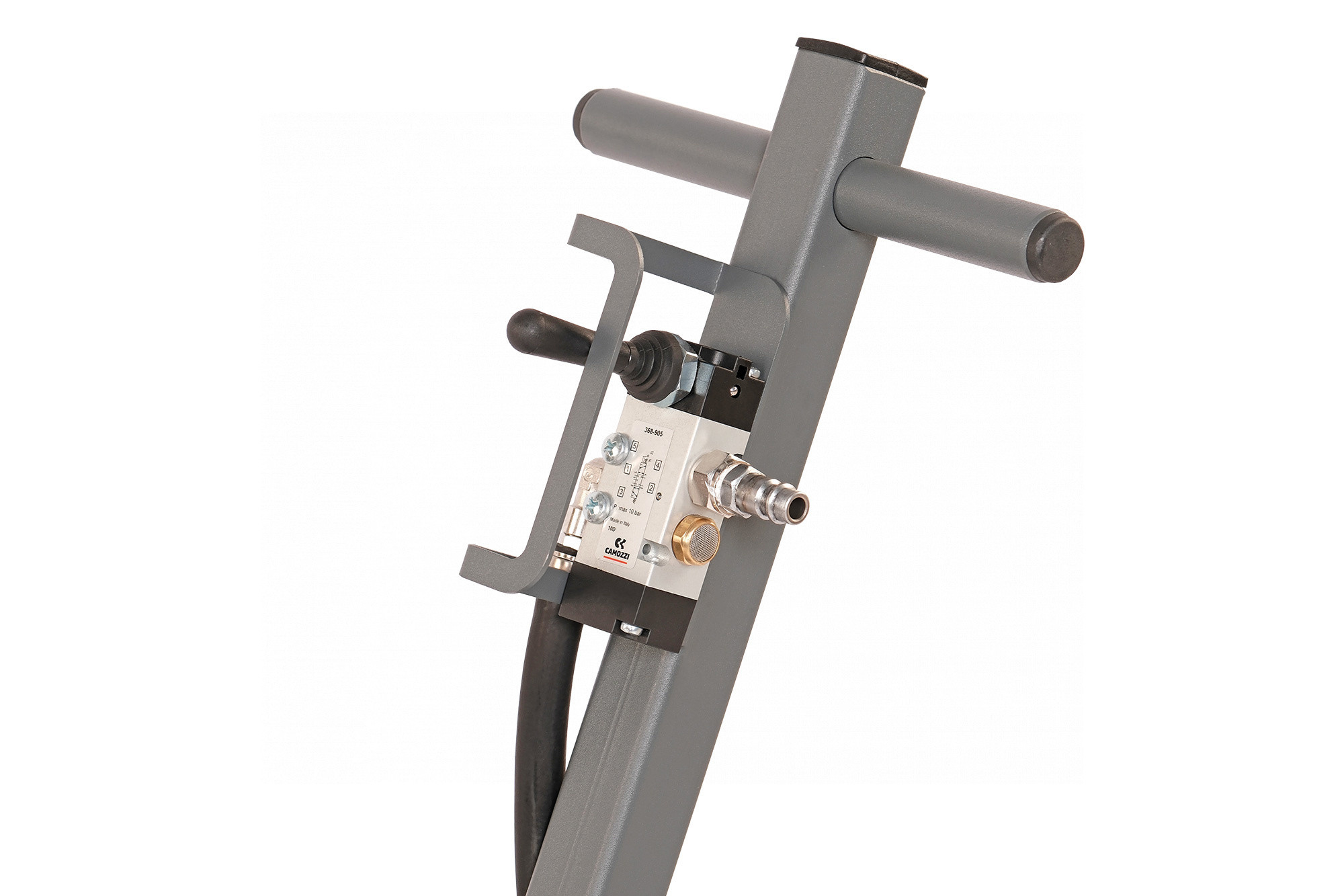 Подъемник, сделанный по типу складной конструкции, управляется при помощи пневмобаллона, что обеспечивает плавное и точное поднятие и опускание автомобиля, а также помогает контролировать высоту подъема.