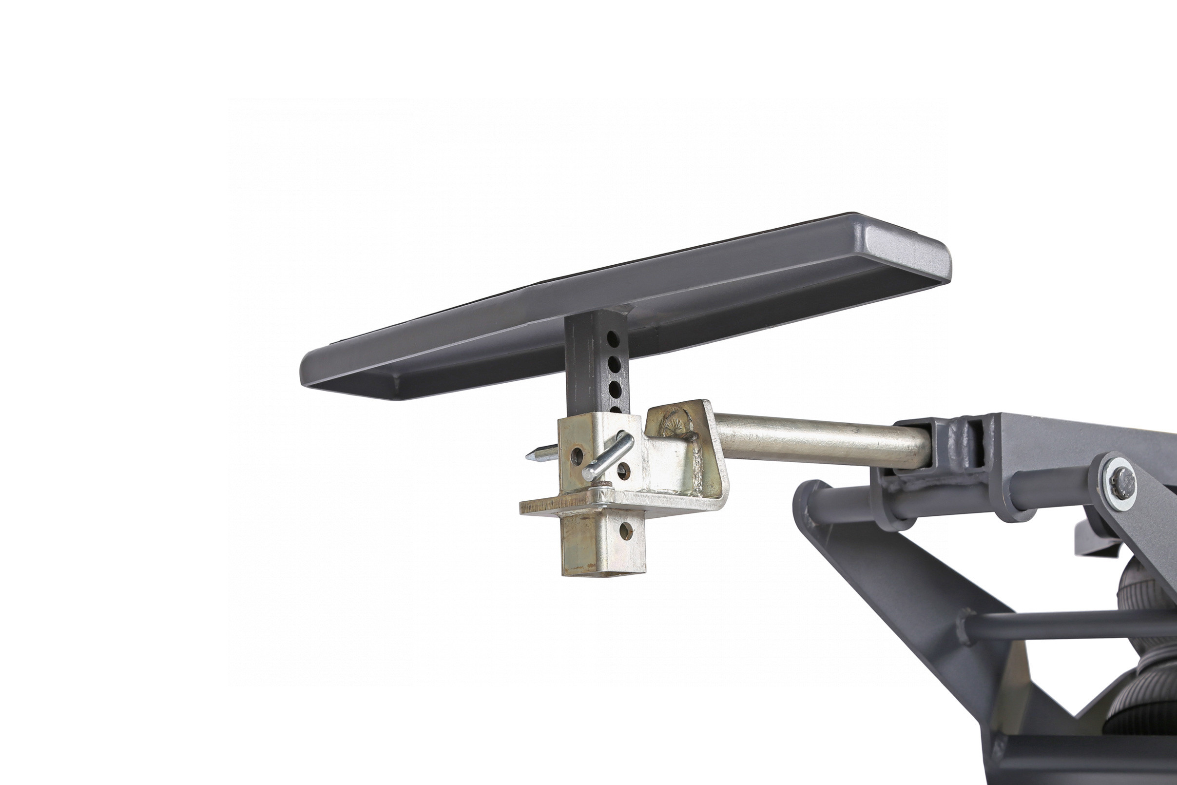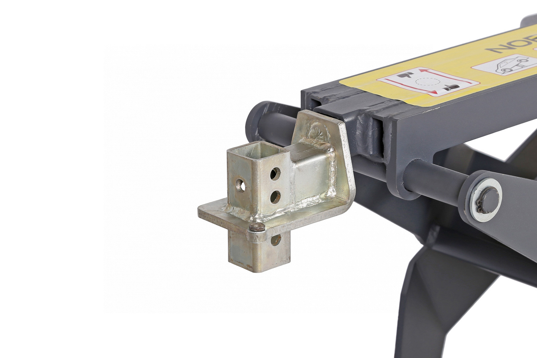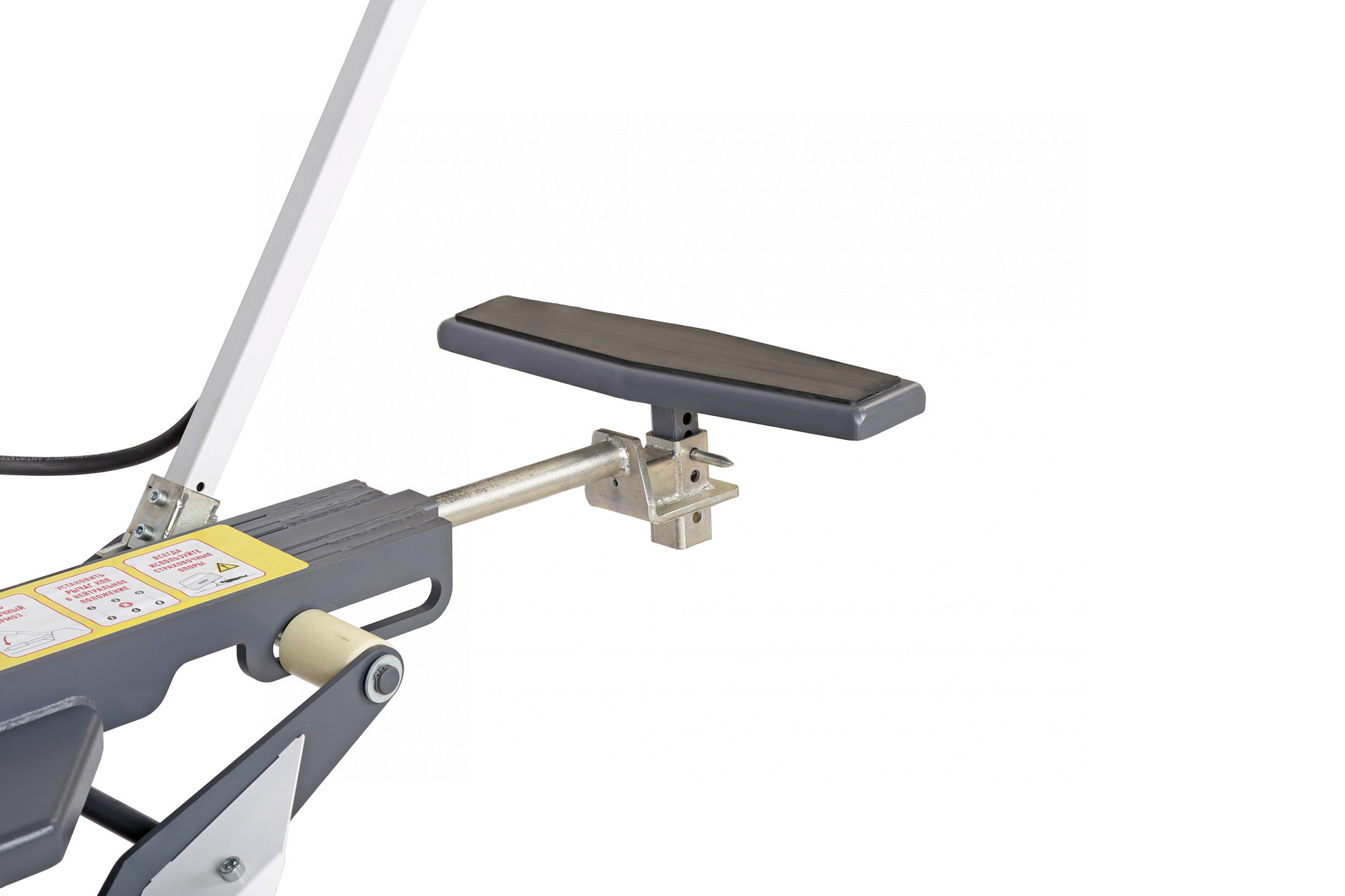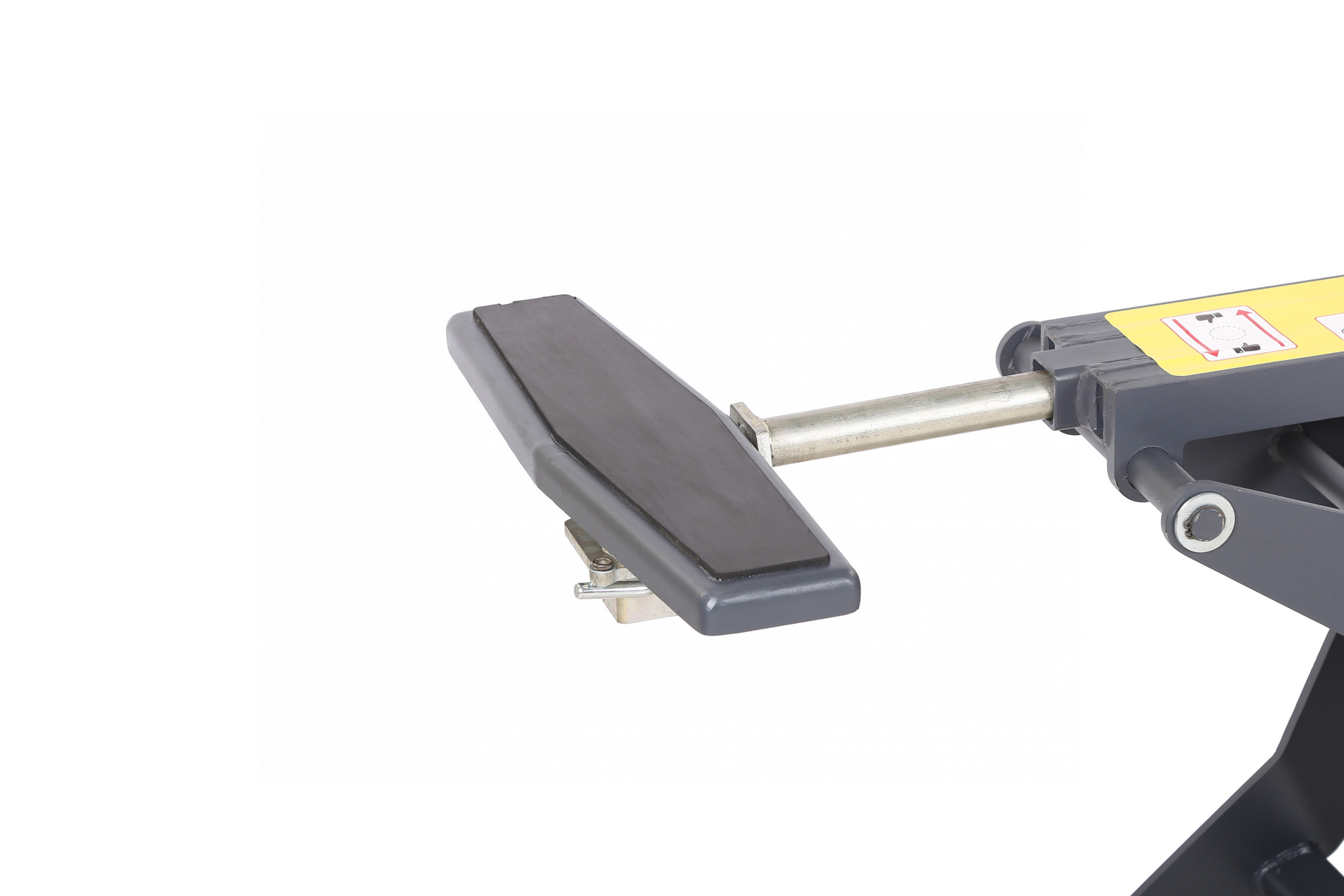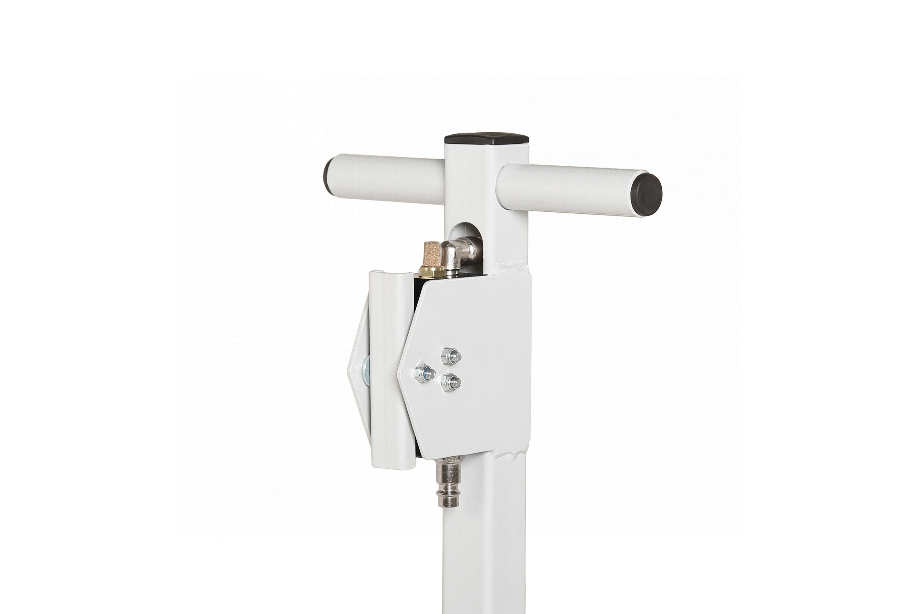 Подъемник, сделанный по типу складной конструкции, управляется при помощи пневмобаллона, что обеспечивает плавное и точное поднятие и опускание автомобиля, а также помогает контролировать высоту подъема. Мобильный подъемник может полностью заменить классический двухстоечный подъемник благодаря возможности подключения к нему воздушного шланга компрессора.