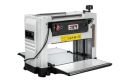 JWP-12 переносной рейсмусовый станок с откидными столами. Несмотря на компактные размеры, оборудован мощным (1800 Вт) тяговитым коллекторным двигателем и позволяет «пропускать» заготовки шириной до 12 дюймов (примерно 300 мм) с высокой производительностью. При тщательной настройке обеспечивает высокое качество рейсмусования, после которого не требуется дополнительная финишная обработка деталей. Подходит для грубого чернового строгания, причем лучше многих других однотипных моделей, поскольку в отличие от них имеет прочные перетачиваемые ножи, зафиксированные в барабане распорными планками, а не узкие одноразовые. Дополнительным преимуществом является запасная пара качественных лезвий из быстрорежущей стали, поставляемая в штатном комплекте. Станок имеет пылесборный кожух с патрубком для подключения к системе аспирации и оборудован типовыми для переносных рейсмусов системами регулировки высоты строгания вращающейся рукояткой и автоматической протяжки заготовки при помощи обрезиненных валов.