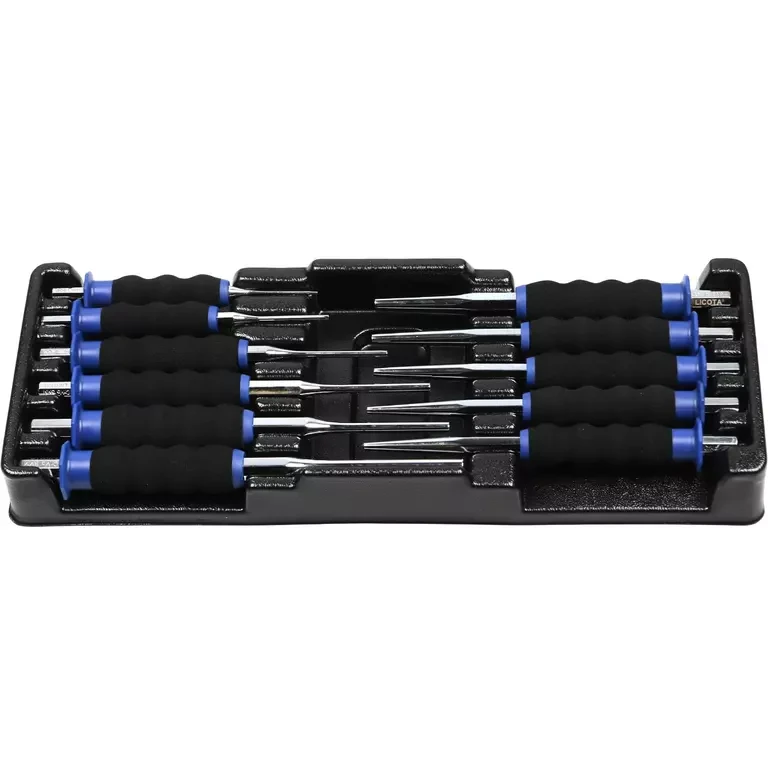 Набор выколоток Licota ACK-384021. Комплект из 11 предметов в пластиковом ложементе с углублениями под инструмент.