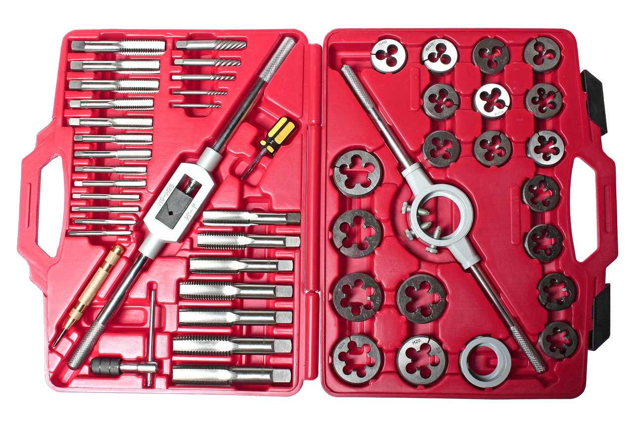 - Плашки, наружный диаметр 1-1/2": М6х0.75, М6х1.0, М8х1.0, M8х1.25, М10х1.25, M10х1.5, M12х1.25, M12х1.5, M14х1.5, M14х2.0, M16х1.5, M16х3.0, M18х1.5, M18х2.5 - 14 шт.