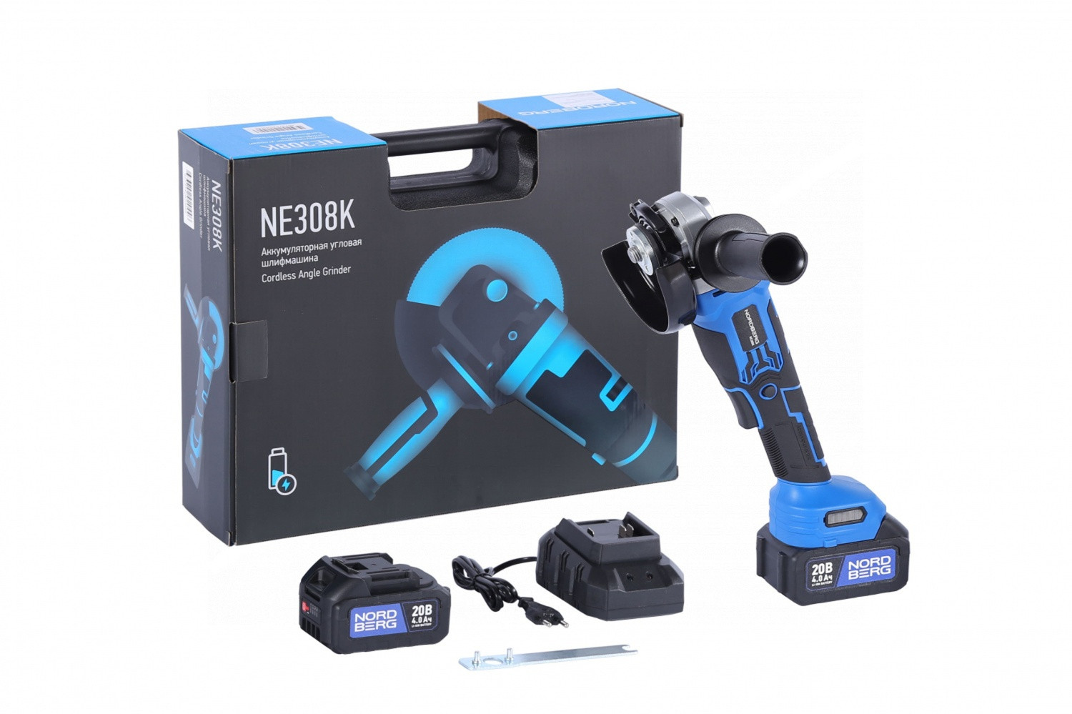 NORDBERG NE308K — аккумуляторная углошлифовальная машина (УШМ) с бесщеточным двигателем. Профессиональное решение для шлифовки, резки и зачистки различных материалов.