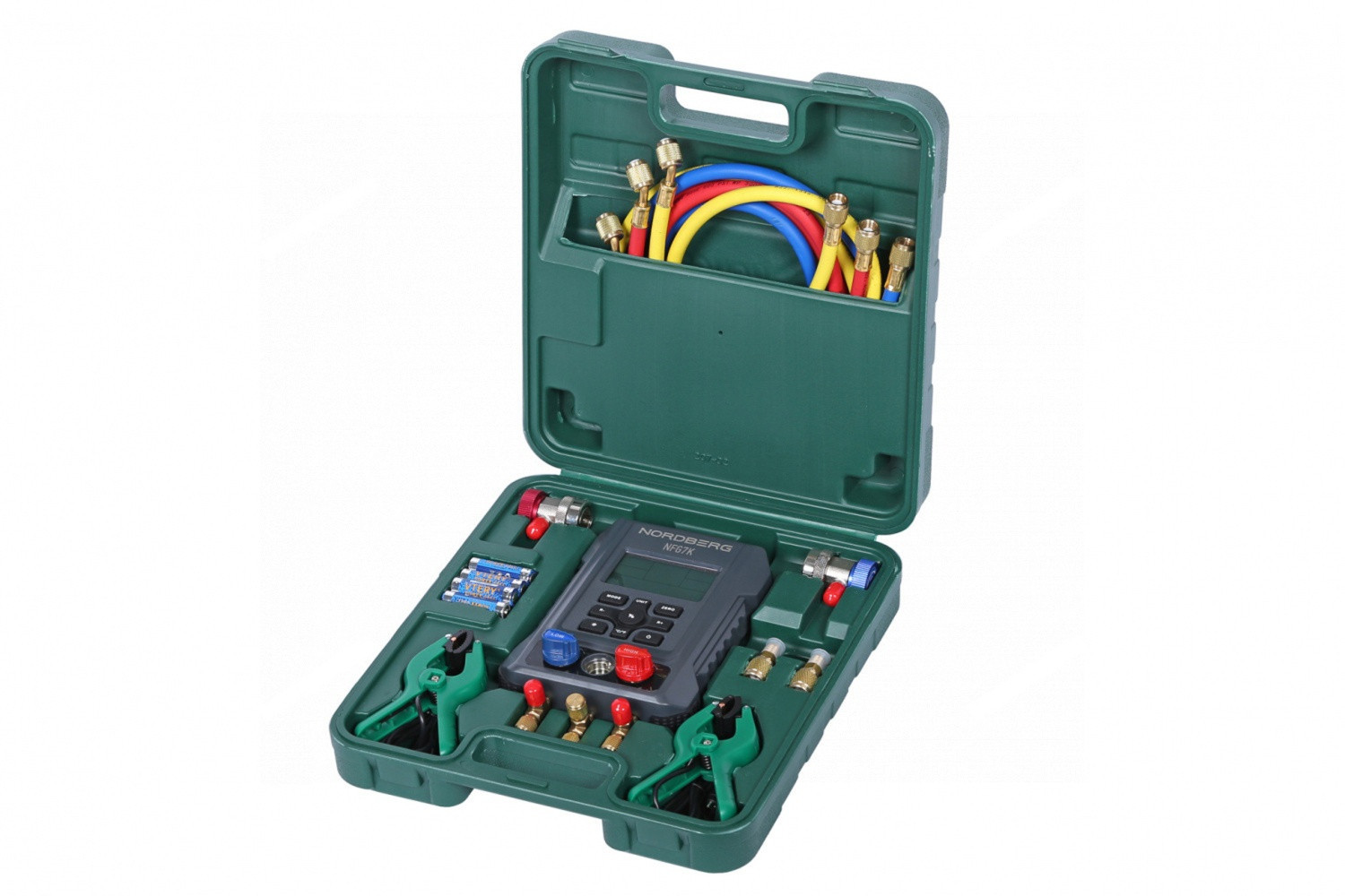 Манифолд NORDBERG NFG7K – специальный цифровой прибор, позволяющий специалистам в области холодильного оборудования проводить точные измерения давления и пр., а также упрощать процесс обслуживания и настройки систем кондиционирования воздуха.