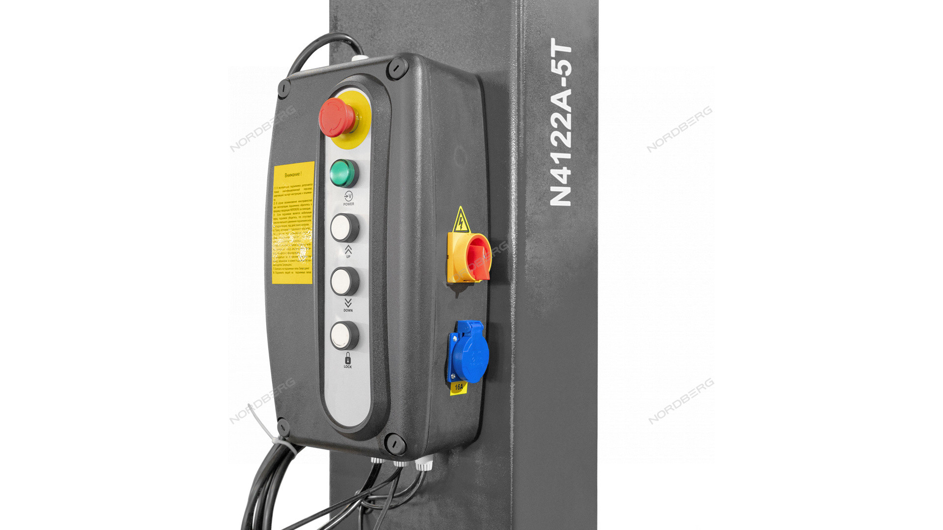 Подъемник двухстоечный 5 т, нижняя синхронизация, с электростопорами, 380 В, серый N4122AE-5G_380