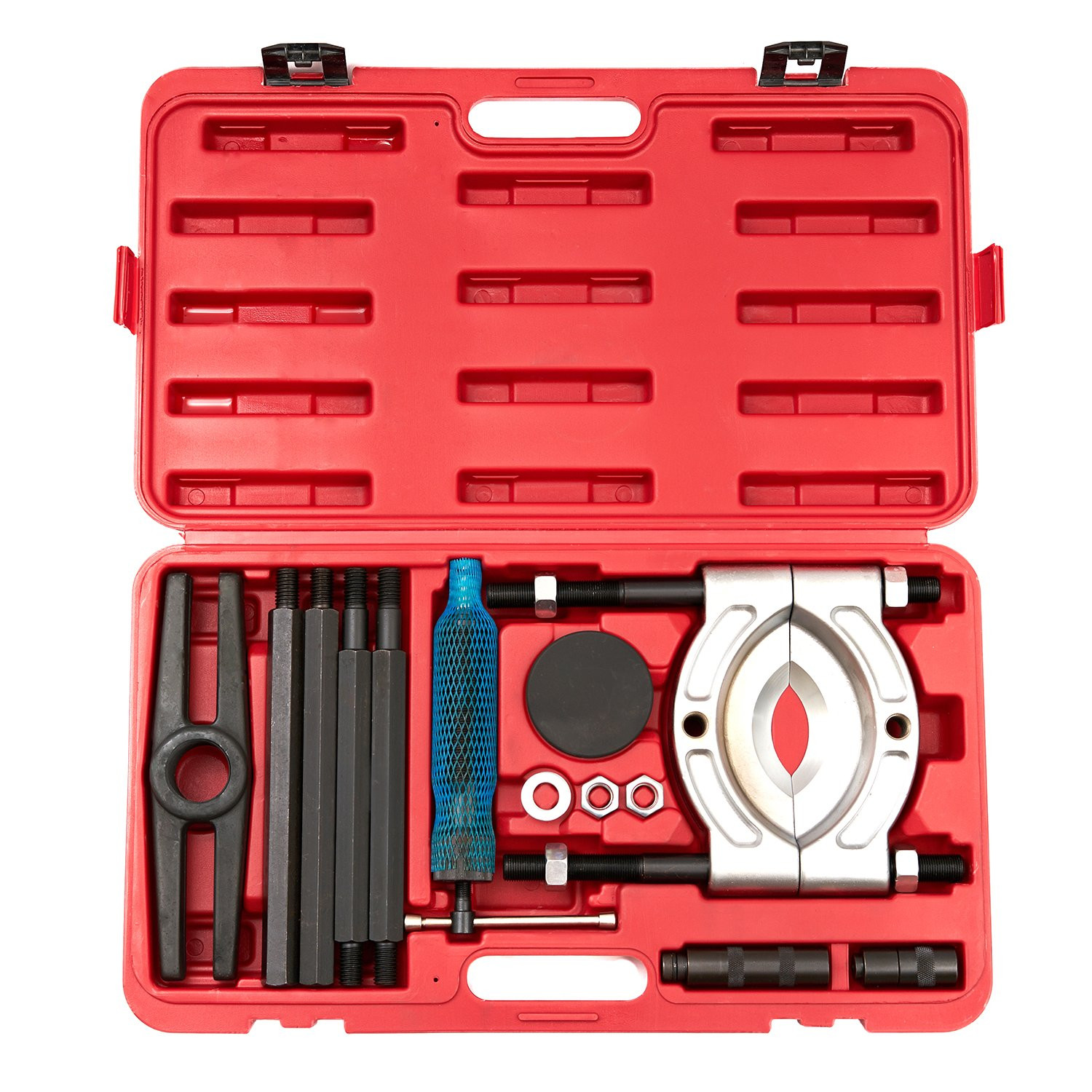 Съемник гидравлический с сепаратором ST010 часто применяется в автосервисах, на СТО и в др. местах, где есть необходимость съема нагруженных деталей транспорта, находящихся на расстоянии до 375 мм от опорной поверхности. Размер деталей варьируется от 105 до 150 мм. Захваты повышенной твердости (HRC 42-45) обеспечивают приспособлению продолжительный эксплуатационный срок и низкий уровень износа. Детали тянущейся части из углеродистой стали гарантируют его отличную работоспособность. Съемник поставляется в удобном пластиковом чемодане с ручкой, который занимает мало места и прост в транспортировке и хранении.