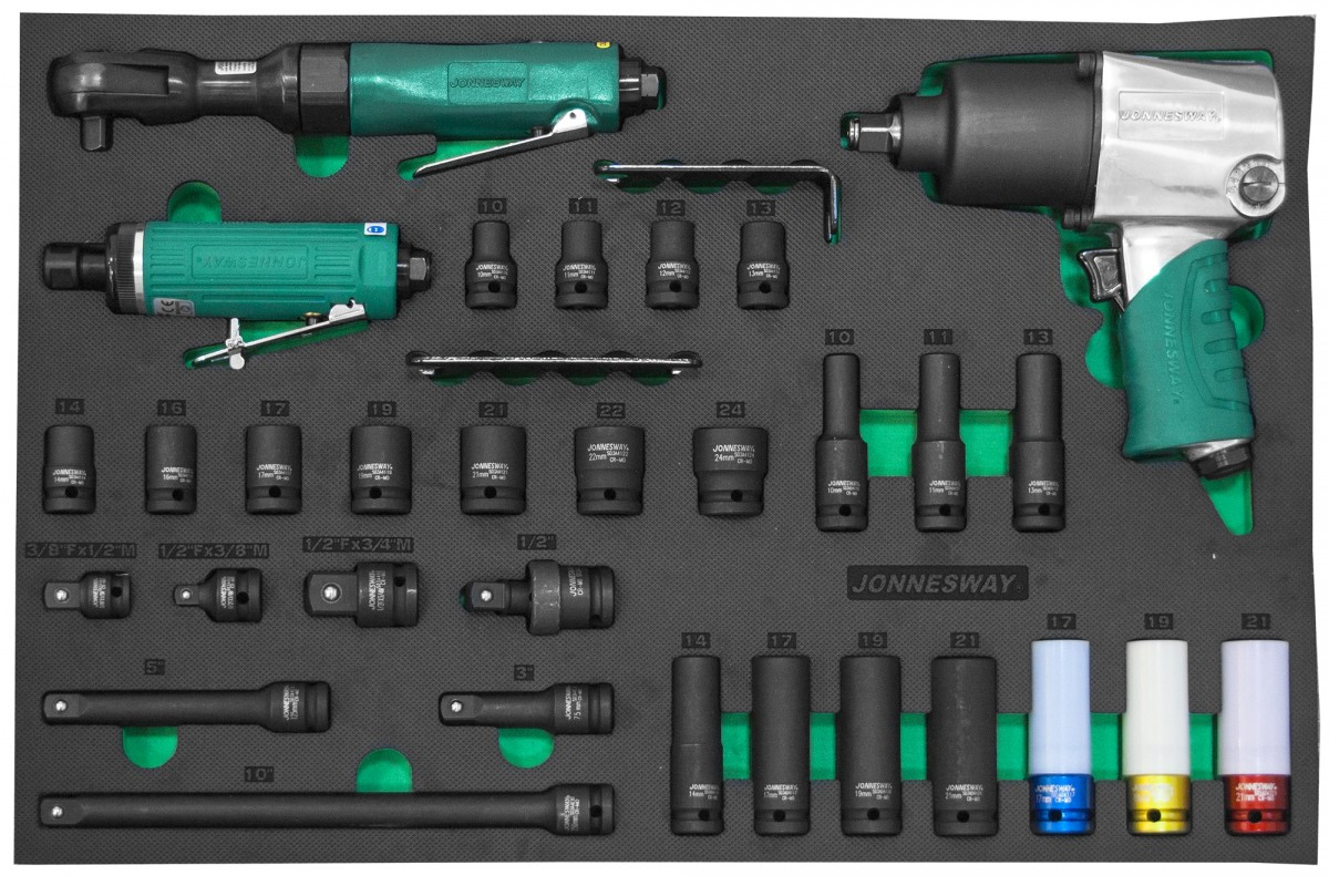 Набор пневматического инструмента 1/2"DR и аксессуаров к ударному инструменту в EVA ложементе 560х400 мм, 31 предмет.
