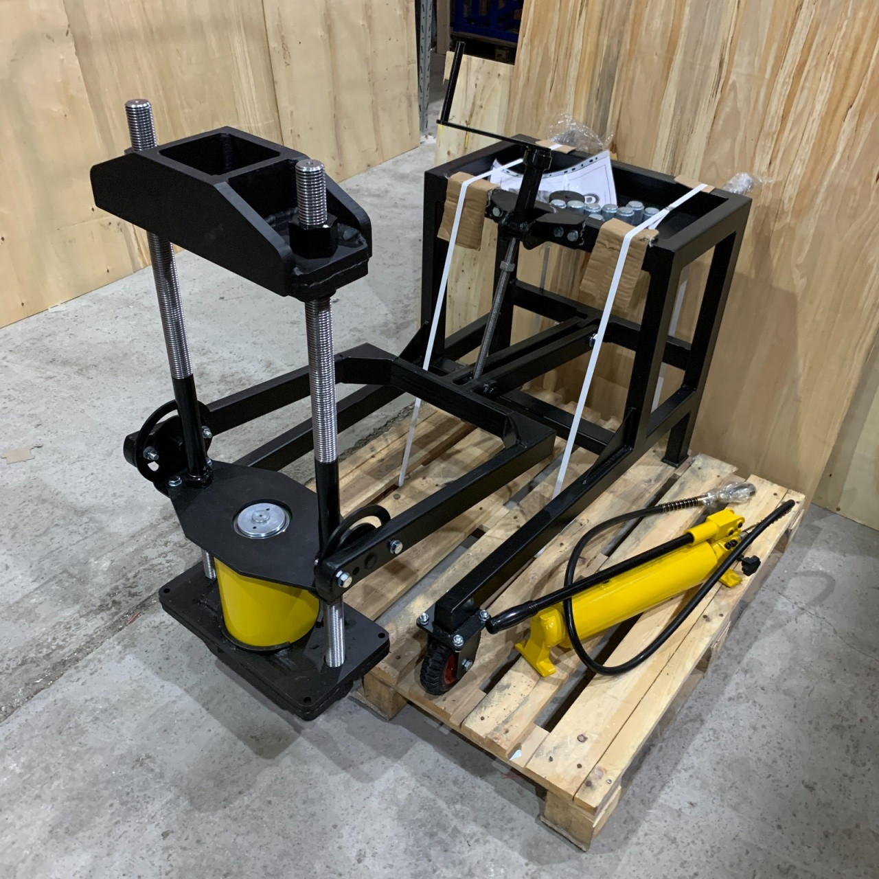 Гидравлический выпрессовщик шкворней модели ТТН-103/1 предназначен для выпрессовки, запрессовки шкворней, диаметром до 56 мм, поворотных цапф грузовых автомобилей без демонтажа передней балки на станциях технического обслуживания и автотранспортных предприятий. Выпрессовщик ТТН-103/1 является надежным и точным съемником, который особенно востребован для быстрого и безопасного обслуживания ходовой части грузовых автомобилей. Так, как шкворень запрессован достаточно плотно, его демонтаж при помощи молотка, кувалды может привести к повреждению поворотного кулака. Для аккуратного извлечения и установки новой детали применяют специальные съемник – выпрессовщик.. Использование данного оборудования позволяет, как выпрессовывать шкворень вышедший из строя, так и запрессовывать новый. Так же данный комплект можно использовать для выполнения любых других подобных операций, широко распространённых при ремонте, как грузовых, так и легковых автомобилей. При использовании ТТН-103/1 выпрессовка и запрессовка шкворней становится быстрой, легкой и комфортабельной.