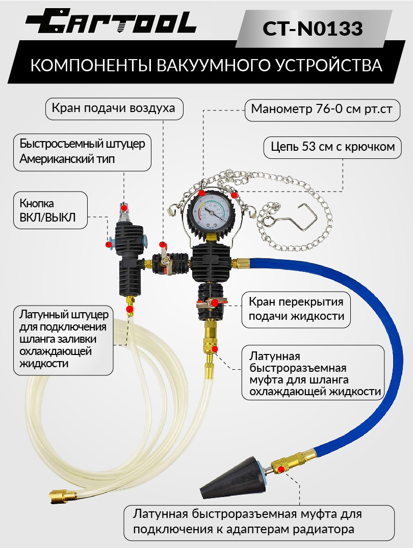 - быстросъёмный адаптер с клапаном сброса давления - адаптеры крышки радиатора: