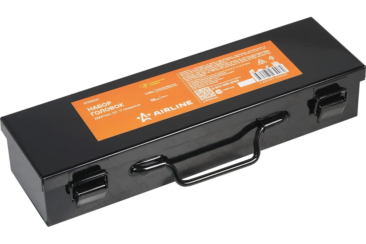 Набор головок ударных 1/2"DR, 38 мм, 17 предметов, 10-36 мм, металлический кейс Airline ATAS061