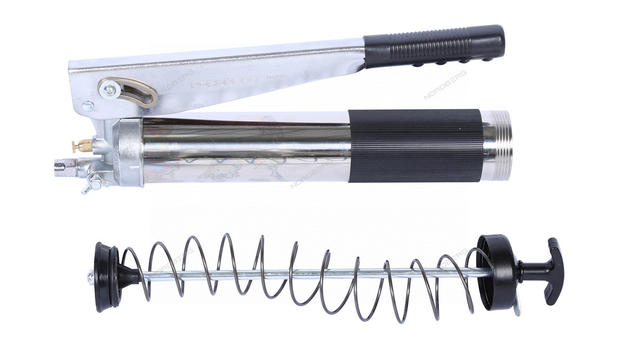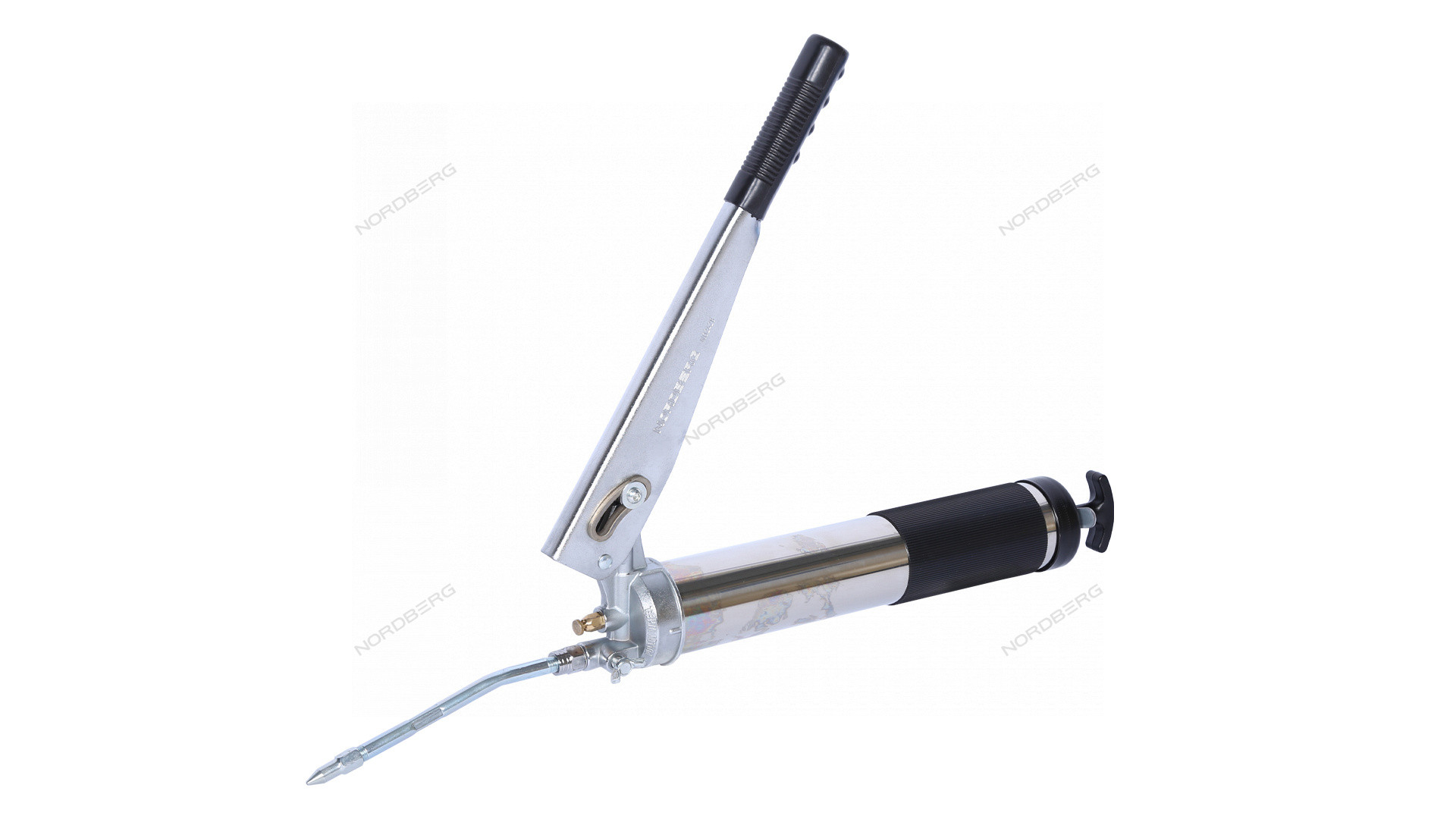 Усиленный плунжерный шприц для густой смазки NORDBERG NO2428 – вспомогательное оборудование для обслуживания узлов и агрегатов автотранспортной техники и промышленного оборудования в автосервисах и СТО.
