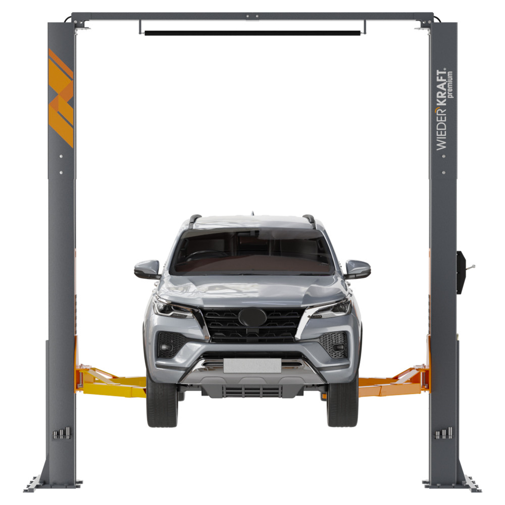 Двухстоечный подъемник с верхней синхронизацией WiederKraft WDK-534 грузоподъемностью 5000 кг. Отличается высокой надежностью конструкции: усиленный профиль подъемных кареток и лап, направляющие каретки из запатентованного полимера, стальные шкивы (сталь 45), толщина металла 6 мм, система Direct-drive. Управление стопорами с одной колонны экономит время при спуске автомобиля. Наличие концевого ограничителя подъема обеспечивает дополнительную безопасность во время эксплуатации подъемника. Модель WDK-534 оснащена гидравлическими цилиндрами прямого привода (Direct-drive). Технология обеспечивает большую надежность, более плавную работу и снижает затраты на техническое обслуживание подъемника. Система Direct-drive не требует высокого давления, тем самым общая нагрузка на гидравлическую систему значительно снижена относительно “традиционных” гидравлических систем подъема двухстоечных подъемников. Подъемник оснащен системой выравнивания с двойной синхронизацией, которая поддерживает равномерный подъем.
