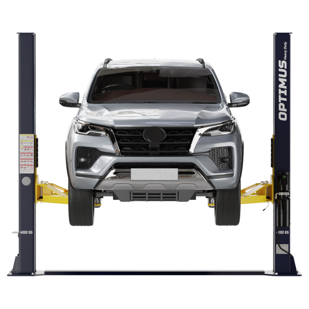 Двухстоечный подъемник с нижней синхронизацией OPTIMUS VS-OPT-4T/220 грузоподъемностью 4000 кг. Отличается высокой надежностью конструкции: профессиональный форм-фактор подъемных кареток, стальные шкивы (сталь 45), асимметричные подъемные лапы, увеличенная опорная платформа колонн 400 х 400 мм (на 5% шире аналогов). На подъемных каретках предусмотрена резиновая защита увеличенного размера, которая позволяет минимизировать риск повреждения двери автомобиля при открытии. Конфигурация подъемника позволяет обслуживать все самые популярные типы автомобилей: от А-класса до микроавтобусов.