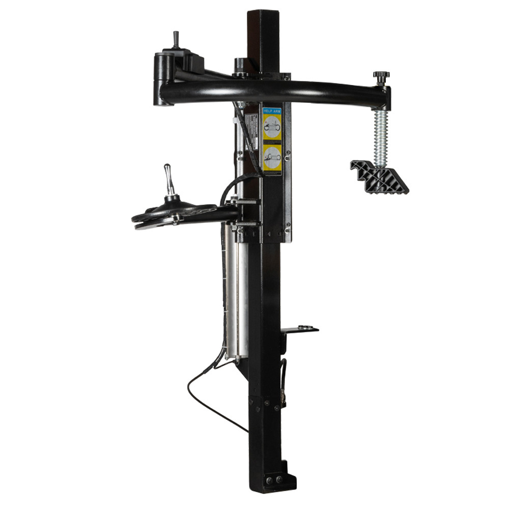 Вспомогательное устройство «третья рука» WiederKraft WDK-75LH устанавливается на шиномонтажные станки WDK-700322 и WDK-700338. Данное устройство позволяет легко и безопасно монтировать и демонтировать широкие низкопрофильные колеса, а также колеса с жестким кордом. Его использование исключает риск повреждения обода диска и борта покрышки и существенно снижает физическую нагрузку на оператора. Основной задачей «третьей руки» является плотное прижатие колеса к рабочему столу и удерживание борта шины в нужном положении. Прижимной рычаг облегчает заведение монтажной головки и введение монтировки между диском и боковиной шины при ее снятии. Также, он служит для удобного прожима боковины шины до уровня монтажного ручья диска, облегчает процесс монтажа шины и уменьшает натяжение боковины. Нижний опорный диск используется для дополнительной поддержки и облегчения подъема шины вверх при снятии. Он особенно удобен при работе с большими и тяжелыми колесами. Устройство устанавливается на левую сторону полуавтоматического шиномонтажного станка.