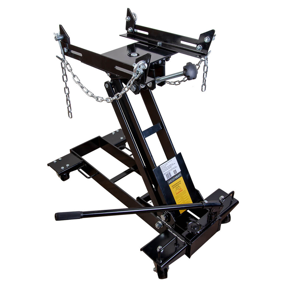 Специальный домкрат WiederKraft WDK-80101 для монтажа агрегатов (трансмиссий, коробок передач, редукторов и т. д.) на грузовой и легковой технике. Имеет широкое устойчивое основание и оснащен 4 колесами для подката под кузов транспортного средства. Снабжен регулируемой площадкой с захватами и цепями. Данный трансмиссионный домкрат способен удерживать агрегаты весом до 1000 кг.
