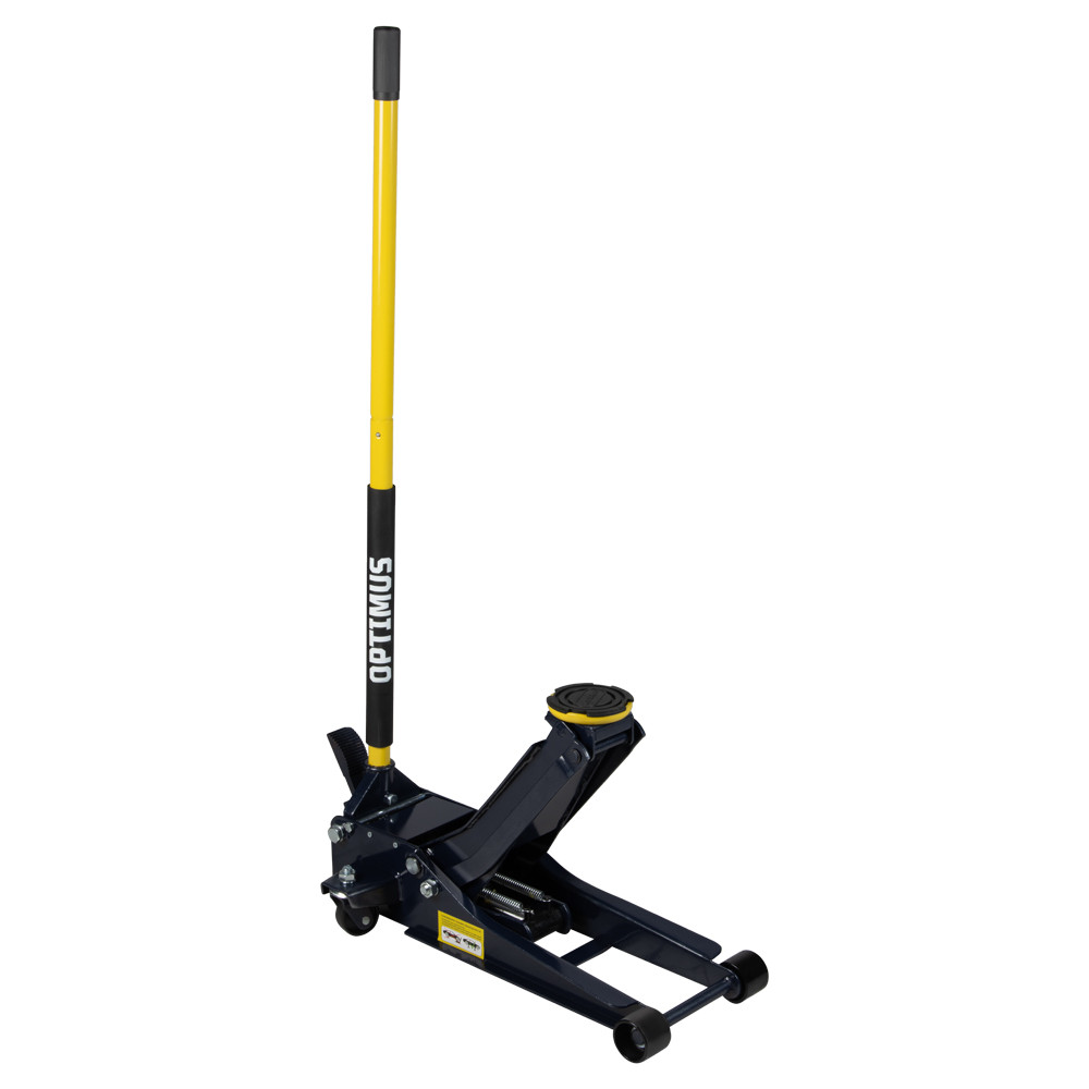Гидравлический подкатной домкрат c ножной педалью OPTIMUS OPT-8090 грузоподъемностью 3000 кг. Применяется для профессионального использования в шиномонтажных мастерских. Благодаря увеличенным колесам устройство быстро и легко перемещается. Он имеет низкопрофильную конструкцию, что позволяет использовать его для работы с автомобилями с низкой посадкой. Двухштоковый механизм обеспечивает быстрый подъем груза, так как домкрат оснащен системой быстрого подъема рабочей части Quick Lift. Надёжный карданный механизм привода обеспечивает точное управление нагрузкой в любом положении ручки. Ручка управления располагается в мягкой трубке, для предотвращения случайного повреждения автомобиля. Корпус домкрата выполнен из металла, что обеспечивает его прочность и долговечность.