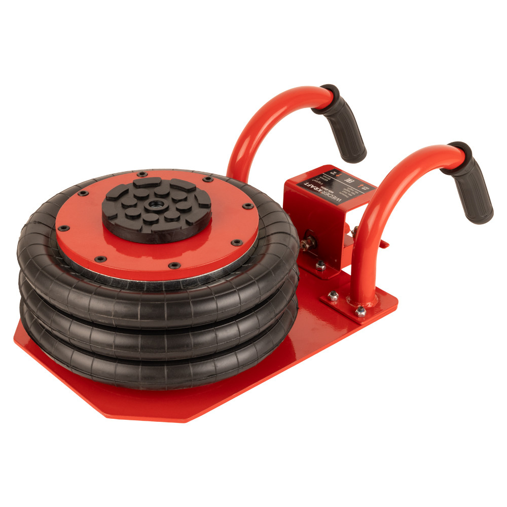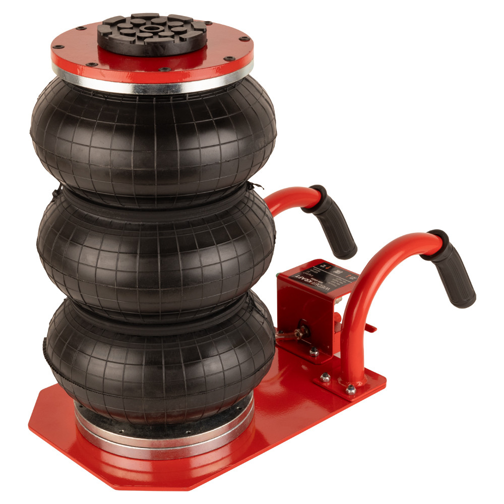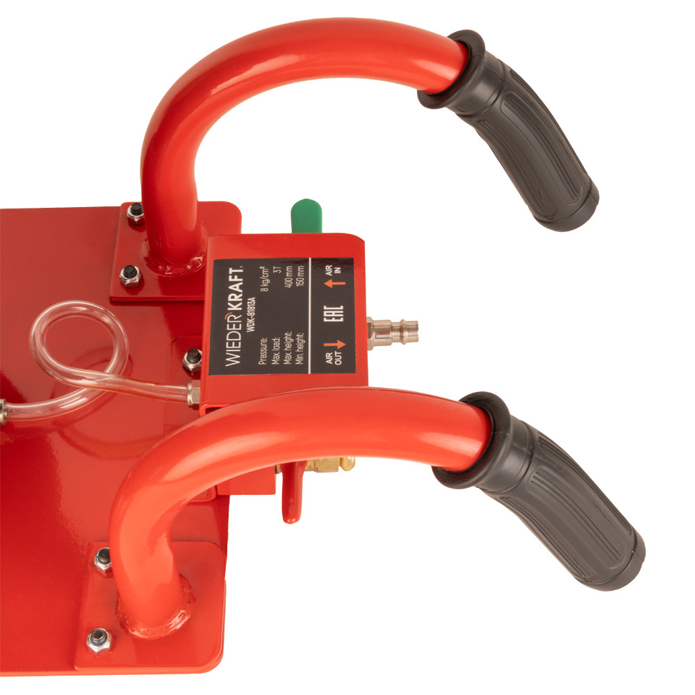 Укороченный пневматический домкрат WiederKraft WDK-81813A грузоподъемностью 3000 кг. Пневматический домкрат обеспечивает подъем легковых автомобилей, микроавтобусов и легких грузовиков без приложения физических усилий оператором. При этом, обеспечиваются плавность хода при подъеме (опускании) груза и точная регулировка высоты подъема. Высота домкрата позволяет применять его для подъёма практически всех легковых автомобилей. Домкрат не нуждается в техническом обслуживании, прост в использовании, очень устойчив благодаря внутреннему телескопическому цилиндру. Подключение к воздушной магистрали осуществляется при помощи быстросъемного фитинга. Сжатый воздух можно подавать как напрямую с компрессора (лубрикация воздуха обязательна), так и по магистрали, которая имеется в крупных автосервисах и СТО.